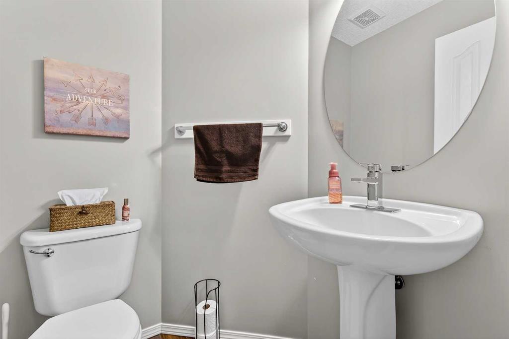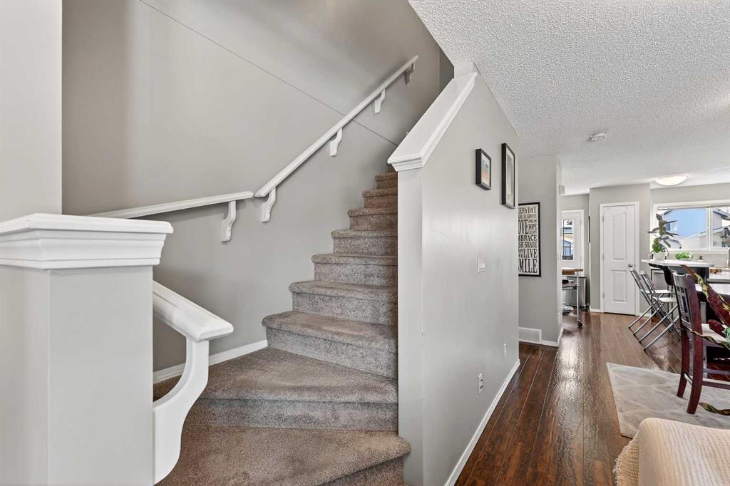 Welcome to this beautifully maintained semi-detached home in the highly desirable community of Cranston SE, showcasing true pride of ownership throughout! The main floor greets you with a good-sized living room, dining room, and spacious kitchen, offering a bright and functional open-concept layout—perfect for everyday living and entertaining. A convenient half bathroom on the main floor and access to the backyard complete this level. Upstairs, you’ll find two generous primary bedrooms, each with its own ensuite bathroom, providing privacy and comfort for owners, guests, or roommates. The undeveloped basement includes laundry and offers endless potential to create additional living space tailored to your needs, with a rough-in for central vacuum already in place. Step outside to enjoy the south-facing backyard featuring a patio—perfect for relaxing, hosting, and entertaining all summer long. The yard also includes a parking pad with room to build a double detached garage, adding future value and convenience. Located on a quiet street, this home is close to major highways, schools, shopping, and amenities, with walking paths overlooking Fish Creek Park and the Bow River close by. Residents also enjoy access to the Cranston Residents Association, a 22,000 sq. ft. community hub offering a gymnasium, banquet rooms, skating rink, splash park, and tennis courts. Cranston is a family-friendly community, making this home ideal for a couple, small family, or investor. Welcome to your new home!