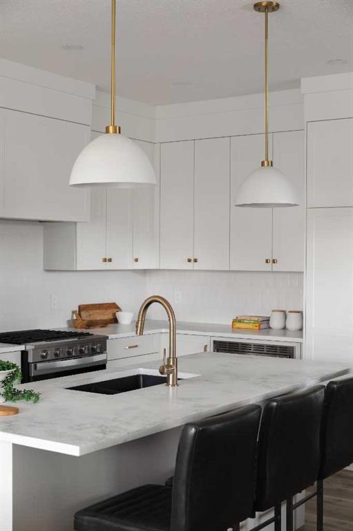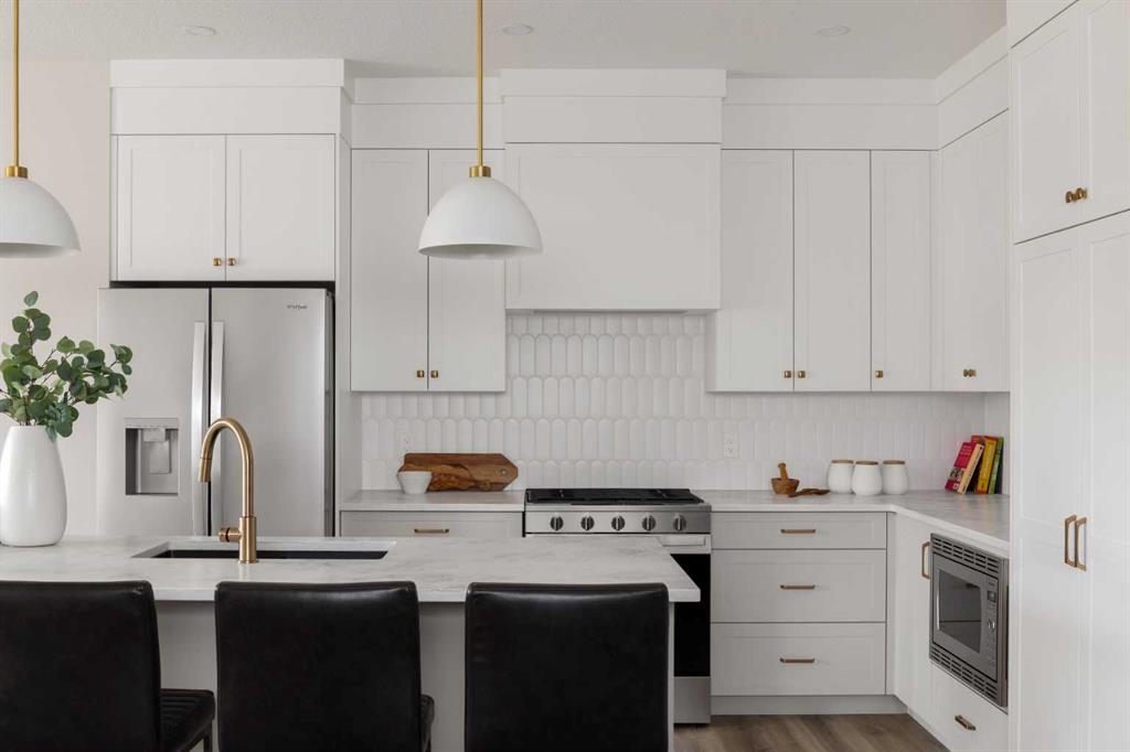 Experience the ideal mix of location, luxury, and lifestyle in this fully developed walkout bungalow in the family-friendly community of Sunset Ridge. Situated on a pie-shaped lot backing onto a green-space pathway and playground, this move-in-ready home is built by award-winning Aspen Creek Designer Homes and features the popular Ethan model. The open-concept main floor offers a beautiful kitchen with quartz countertops, large island, custom cabinetry, and stainless steel appliances, flowing into a bright living room with a cozy fireplace and access to a 17×10 deck. The primary suite is a private retreat with elegant wainscoting, soaker tub, glass shower, dual vanities, and a custom walk-in closet with direct access to the laundry room. The walkout lower level includes a spacious family/games area, wet bar, two bedrooms, 4-piece bath, and ample storage. Enjoy the east-facing, fully sodded backyard. Close to schools, parks, pathways, and minutes from downtown Cochrane and the Bow River.