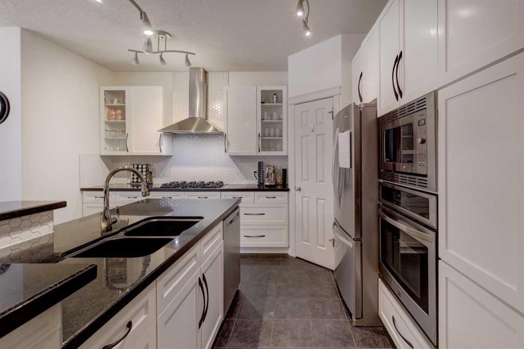 Nestled on one of the most quiet, sought-after streets in Cougar Ridge, this beautifully maintained two-storey home stands out for its immediate access to Calgary’s west-side lifestyle. Just steps from the Paskapoo Slopes trail network—one of the city’s largest natural reserves—along with a neighbourhood playground, this location offers a rare balance of everyday convenience and direct connection to nature, all while maintaining quick access to downtown, West Calgary amenities, and mountain routes. Designed with family living in mind, the home offers four bedrooms above grade—three with walk-in closets—and a standout primary suite that includes a separate flex room. This additional space is ideal for a reading area, home fitness, or quiet workspace, providing a distinguishing level of versatility. The main level impresses with soaring 9-foot ceilings, newer luxury vinyl plank flooring, and fresh, premium Benjamin Moore Aura paint throughout, including cabinetry, railings, and vanities. A newer Waterboss water softener adds everyday luxury, while dual-zone Lennox heating and air conditioning enhance comfort on all levels. At the heart of the home is a chef’s kitchen complete with gleaming granite countertops, updated backsplash, abundant cabinetry and drawers, a corner pantry, stainless steel appliances, and a generous island perfect for casual meals or entertaining. Additional main-floor highlights include an adaptable office space (currently transformed into a captivating movie room), a convenient laundry area, powder room, and direct access to the attached double garage featuring ample storage with ceiling track hoists, shelving, and wall organizers. Upstairs, discover four well-appointed bedrooms, including one that could easily revert to a bonus room and served by a full four-piece bathroom featuring a new tile backsplash. The generous primary suite indulges with a luxurious five-piece ensuite (also with a new tile backsplash) , expansive walk-in closet, and the separate flex room—perfect for whatever you desire. The developed portion of the basement elevates family fun with a dedicated sports room designed for hockey shooting and baseball batting practice, complete with netting, an L-screen for pitching, and full framing, insulation, electrical connections, and protected bright LED lighting. Step outside to a mature, beautifully landscaped backyard featuring a spacious deck with a natural gas BBQ line and a charming paver stone patio—perfect for summer gatherings and relaxing evenings. Don’t miss this rare opportunity to own an exceptional family home in one of Cougar Ridge’s most desirable locations.