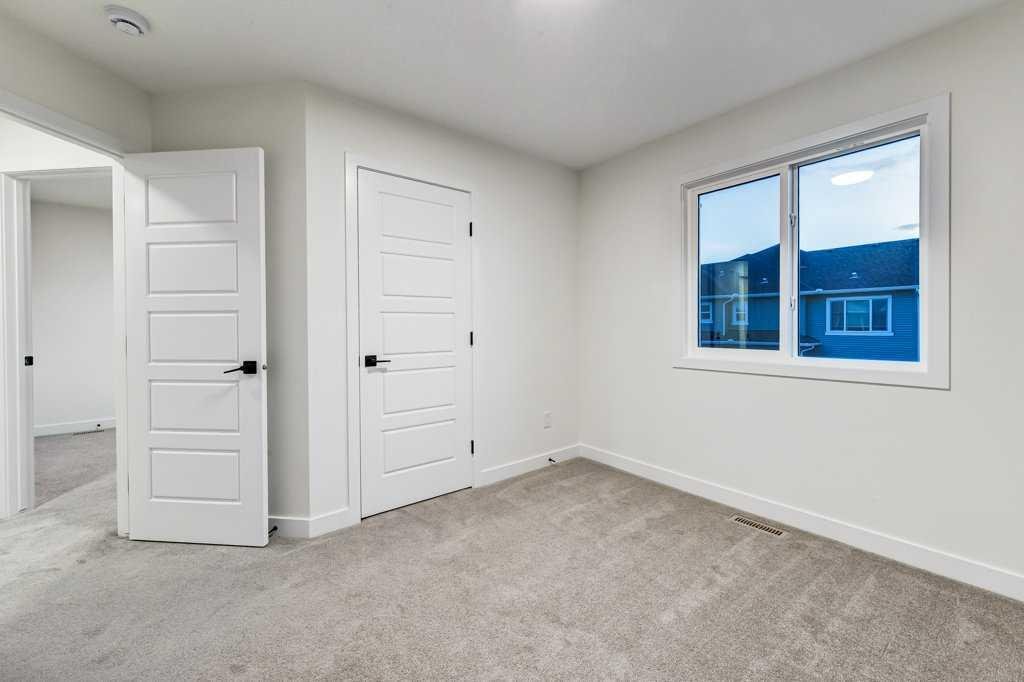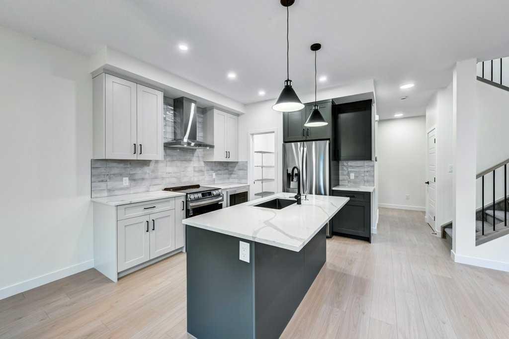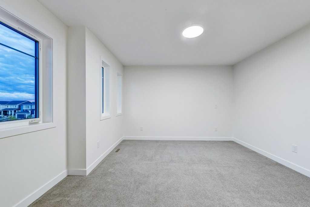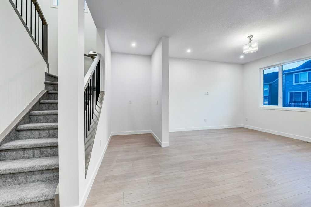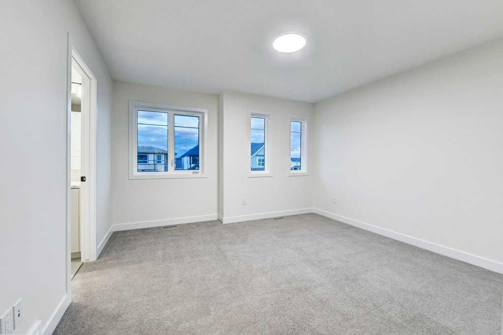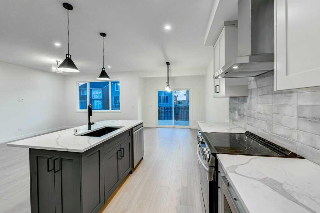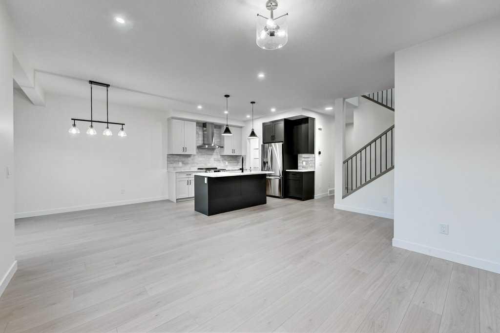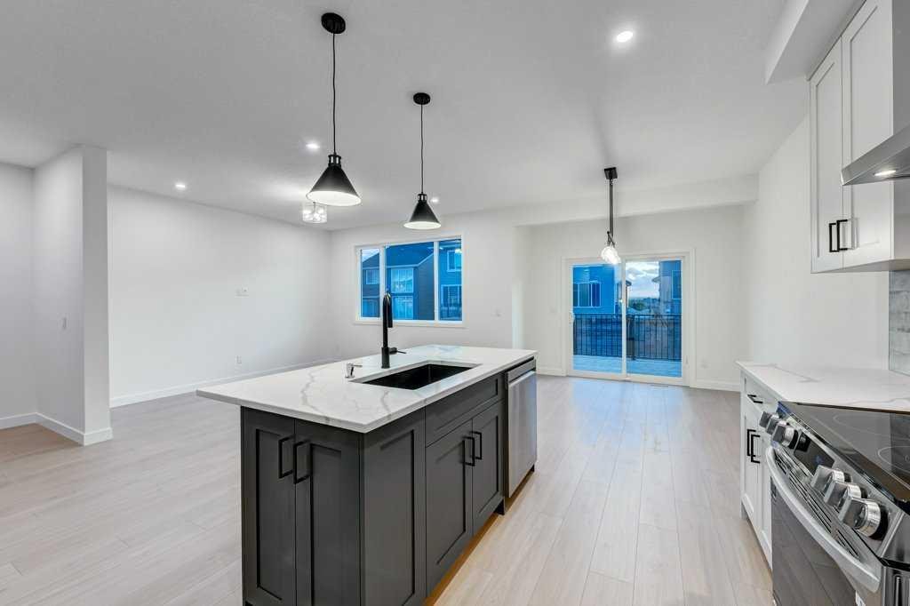 Welcome to 891 Langholm Drive SE, nestled in the vibrant new community of Lanark in Airdrie. This brand new, never occupied two storey home blends modern design, clean lines, and practical functionality, ideal for growing families and young professionals alike. The striking exterior showcases rich charcoal siding, elegant stone accents, upgraded exterior lighting, and a double attached garage, perfect for those cold winter mornings. Inside, you’ll appreciate the wide plank luxury vinyl flooring, crisp white walls, matte black hardware, and an abundance of natural light throughout the main level. A flex area off the family room offers a versatile space for a home office or study nook, while the open concept layout seamlessly connects the living room, dining area, and chef inspired kitchen. The kitchen is a true showpiece, featuring a central island, modern ceiling height cabinetry, gleaming white quartz countertops, an undermount sink with pull down faucet, full height tile backsplash, premium stainless steel appliances, and a statement chimney style hood fan. Large rear facing windows and sliding patio doors bring in natural west facing light and connect the interior to the backyard, ready for your finishing touches. Upstairs, the layout continues to impress with a spacious primary retreat, two large additional bedrooms, full bathrooms, and a conveniently located upper floor laundry area. Two standout features include the upgraded modern iron railing and recessed LED lighting, while sleek black interior hardware and a fresh, neutral palette carry the design cohesion throughout the home. Located on a quiet, family friendly street just steps from parks, playgrounds, scenic pathways and only minutes from shopping & restaurants.Commuters will appreciate quick access to 40th Avenue and nearby main routes. Built by CASTELLANO CUSTOM HOMES with the highest of quality workmanship and attention to detail. Quick possession is available. Contact Troy today to book your private showing.