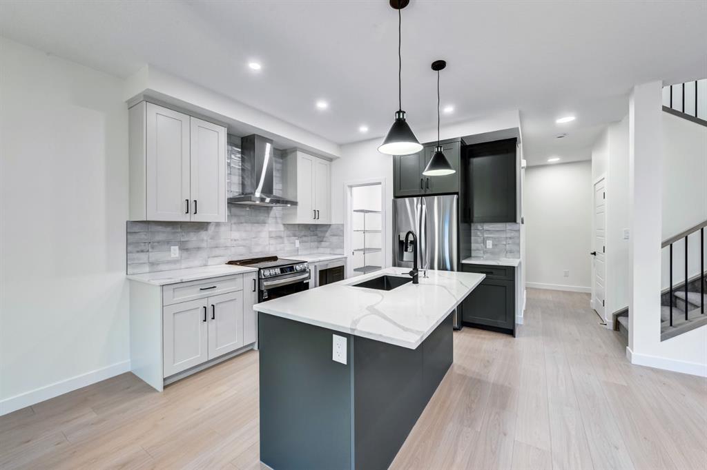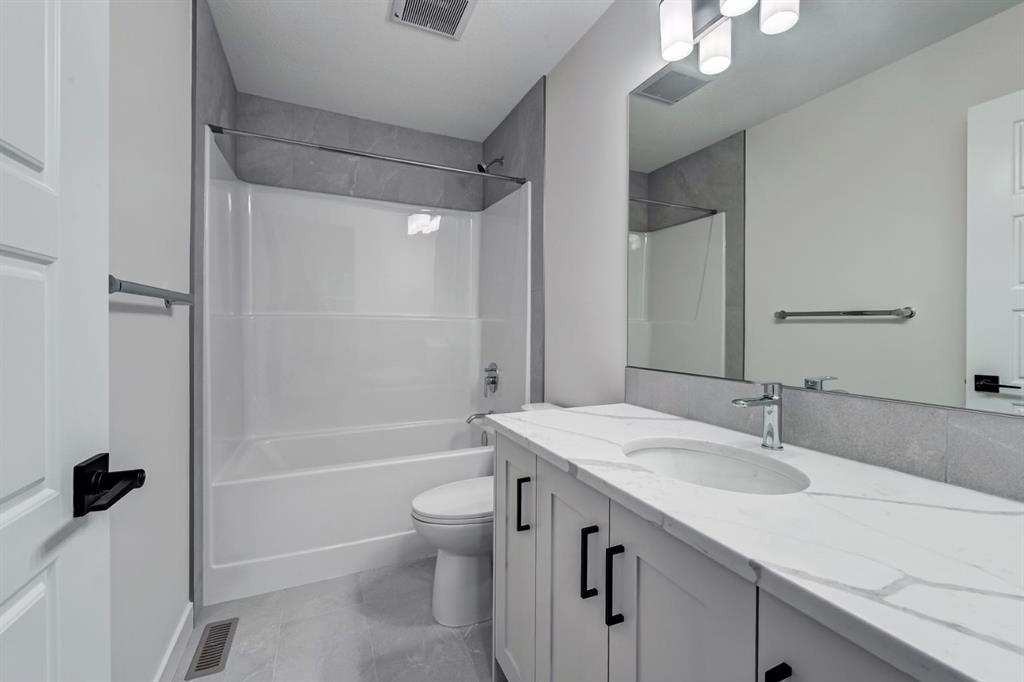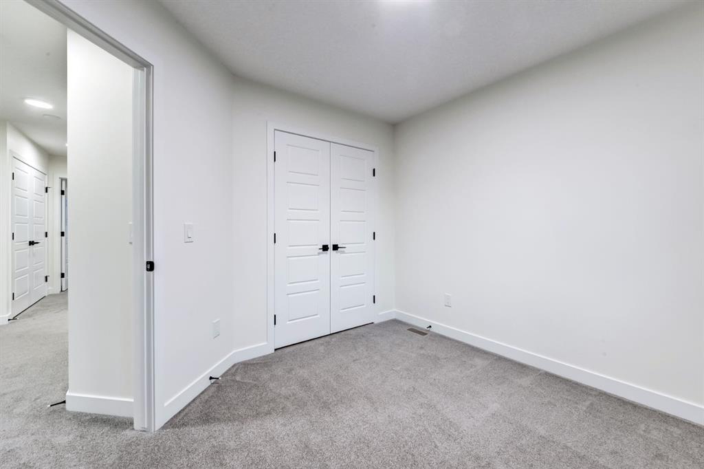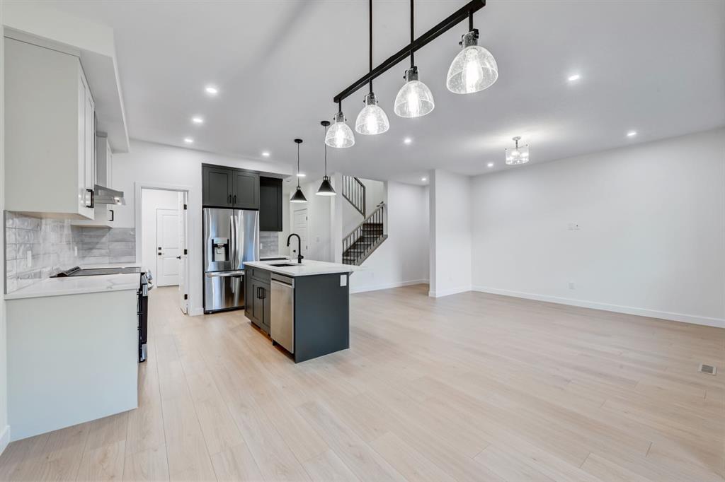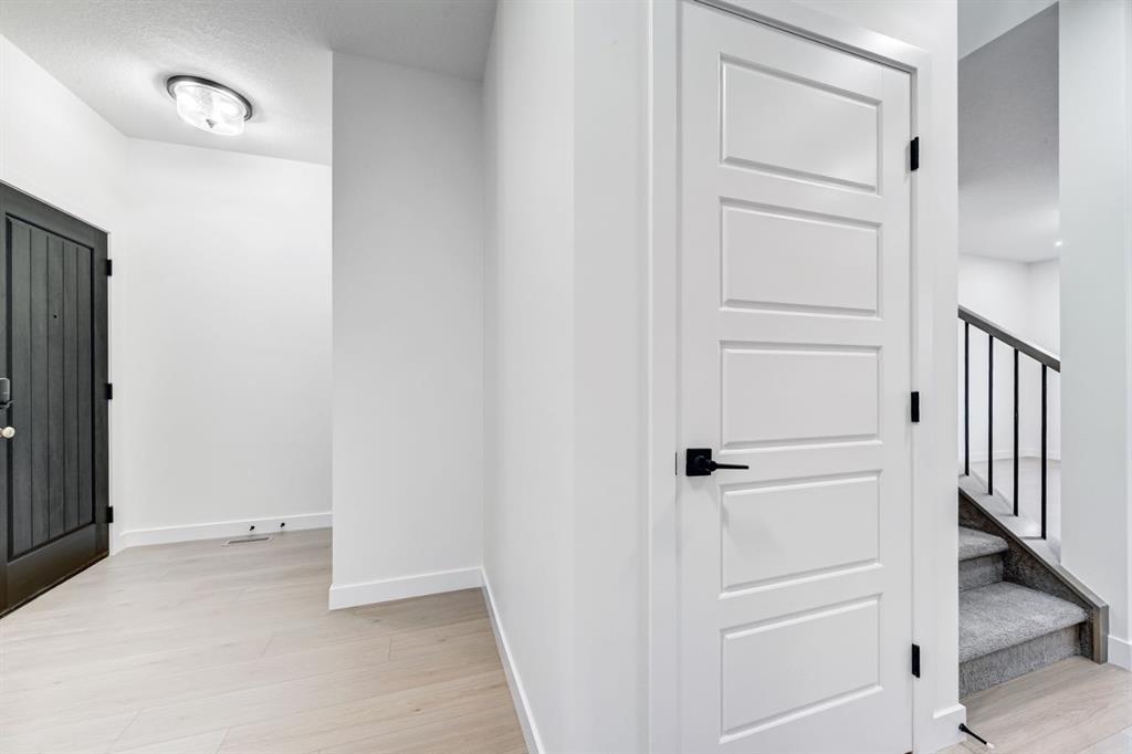 Welcome to your dream home in Lanark Landing, Airdrie’s vibrant, family focused community. This stunning brand new, never lived in two-storey by Castellano Custom Homes sits on a peaceful street with easy access to schools, shopping centres, restaurants, parks, pathways, and major commuter routes offering seamless connections to downtown Calgary, the airport, and the Rocky Mountains. Step through the inviting foyer into an expansive, light filled open concept main floor designed for modern living. The true heart of the home is the gourmet kitchen, boasting a massive central island with elegant waterfall edge quartz countertops, sleek cabinetry, premium stainless steel appliances (including a flat top oven, built-in microwave, and spacious fridge), and must have abundant pantry storage. The kitchen space flows seamlessly into the dining area and generous living room enhanced by a custom built in feature, and a versatile flex space that can serve as a command centre, home office, cozy reading spot, dry bar, or coffee station. The main is perfect for effortless entertaining or relaxed family evenings, with sliding doors leading to the rear deck for indoor-outdoor enjoyment. Upstairs, features two well proportioned bedrooms with ample closet space, convenient upstairs laundry for everyday ease, plus a spacious family/bonus room ideal for movie nights,, or homework zones. The highlight is the generously sized primary suite, thoughtfully laid out with a large walk-in closet offering customizable shelving and organizers, plus a luxurious 5-piece ensuite complete with a relaxing soaker tub, separate shower, and dual vanity your personal spa-like escape.