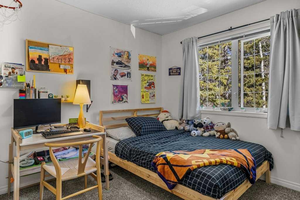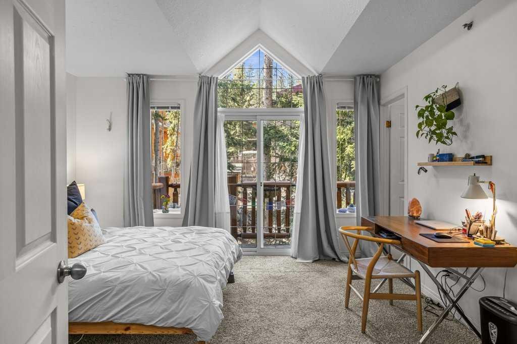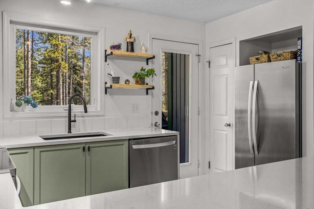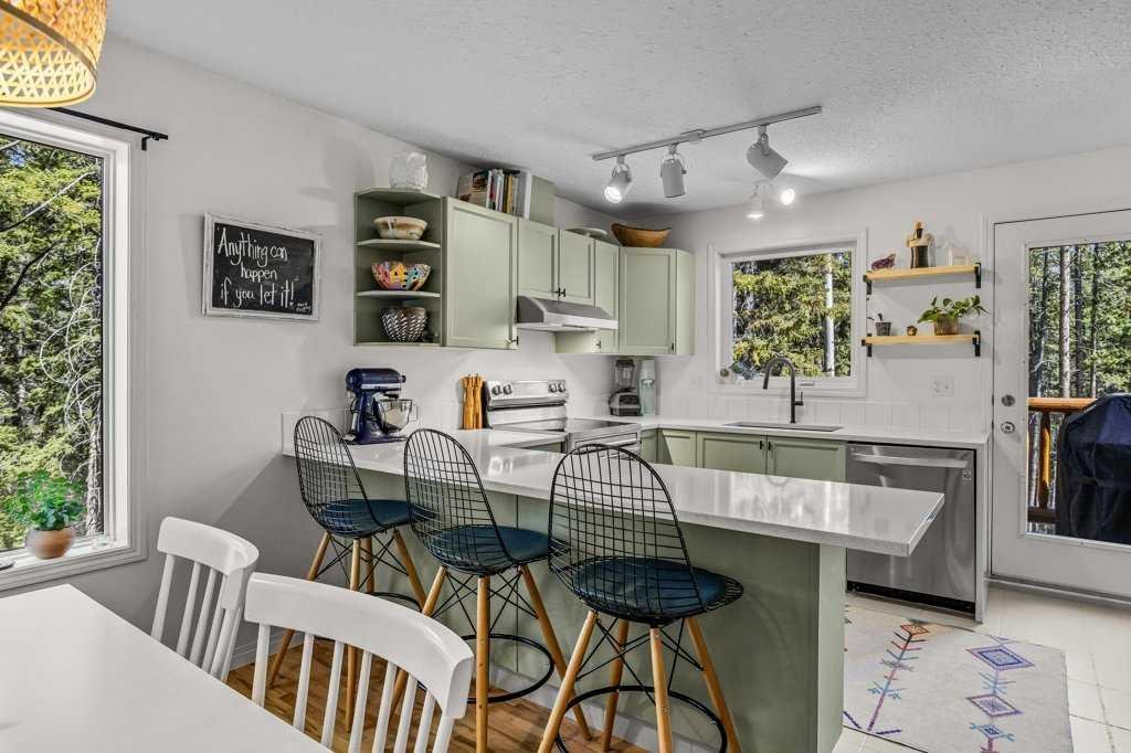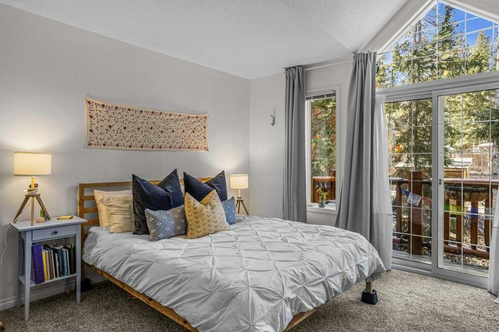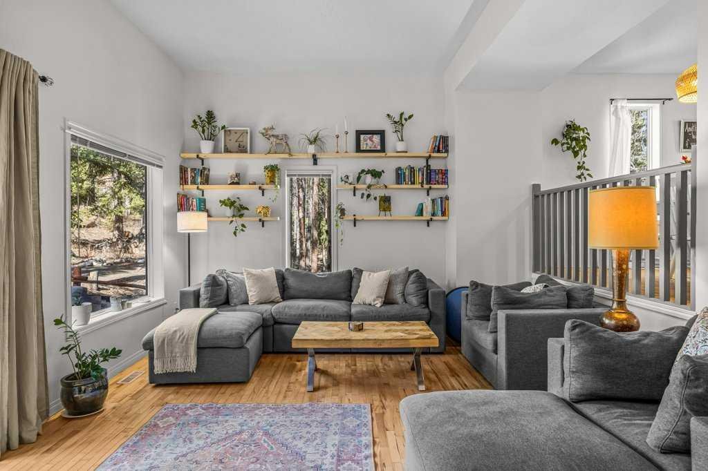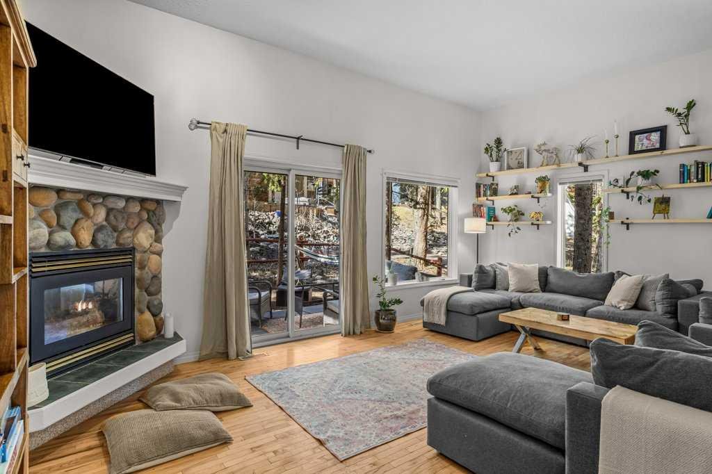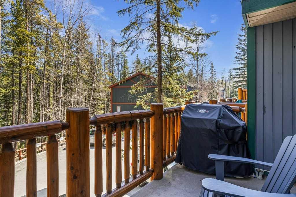 Situated in Rundle Mountain Estates, this well-maintained end-unit townhouse offers a serene forest setting and a quiet, private mountain retreat. With three bedrooms on the upper level and multiple living areas across three levels, the layout is ideal for families or a weekend escape. The bright, open-concept main floor features a functional kitchen, spacious dining area, and inviting living room with a cozy gas fireplace, while large windows bring in natural light and views of the surrounding trees. A two-piece bathroom completes this level. Upstairs, the primary suite includes a walk-in closet, ensuite, and private balcony, alongside two additional bedrooms and a full bath. The lower level provides flexible space for a family room, media area, or extra bedroom, plus laundry and storage. Complete with multiple outdoor spaces, an oversized single garage, and close proximity to Quarry Lake, the Nordic Centre, and downtown amenities.