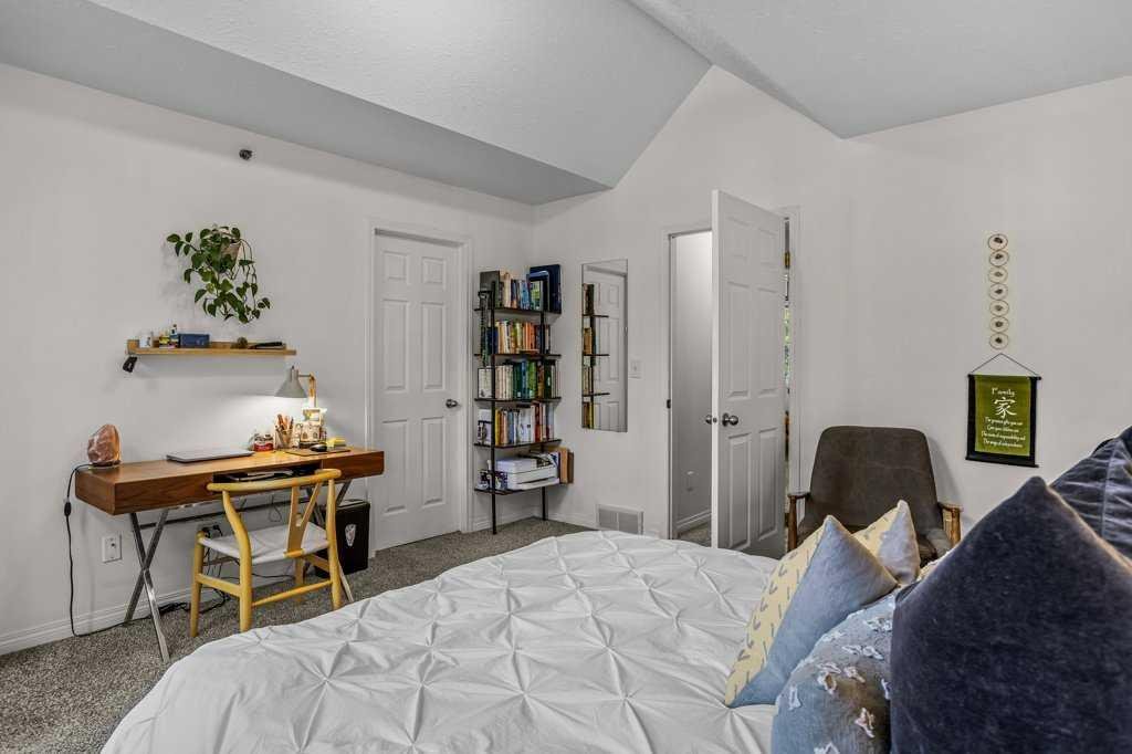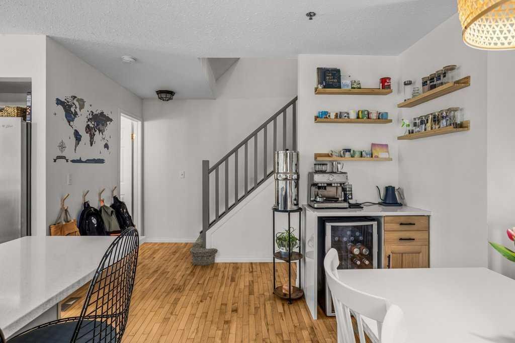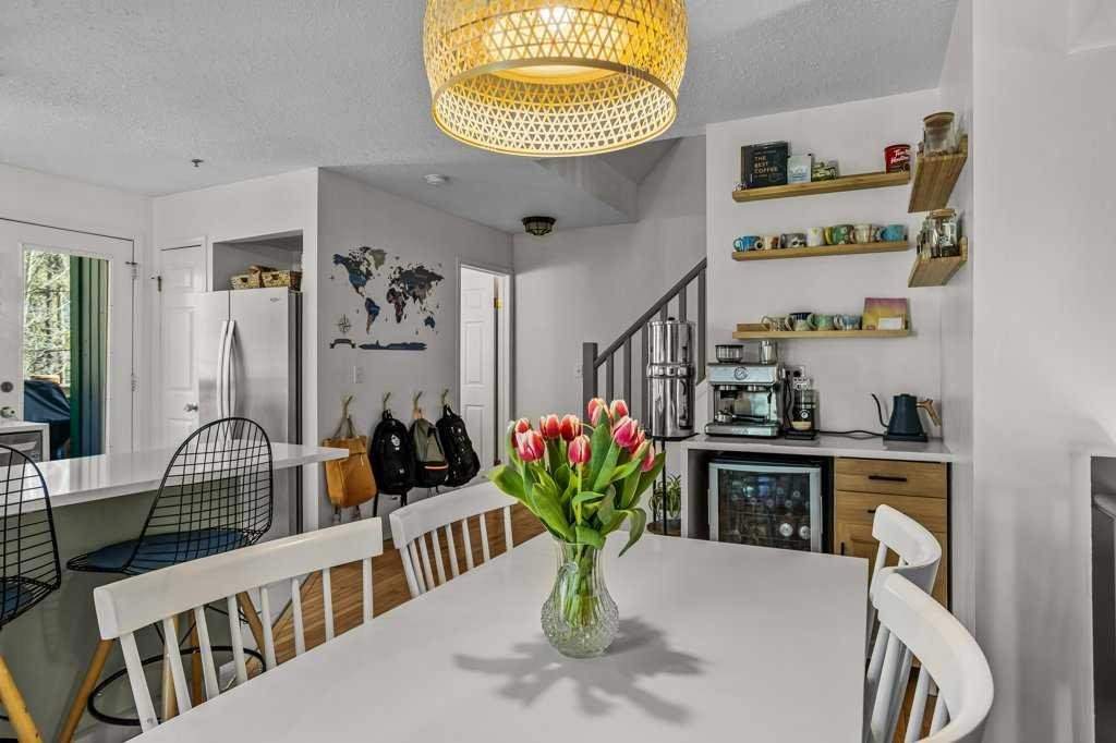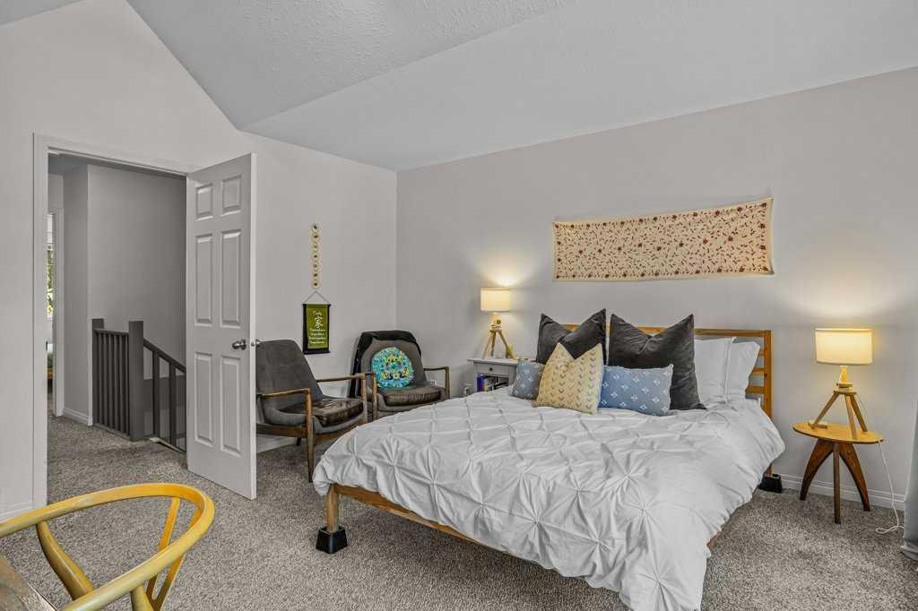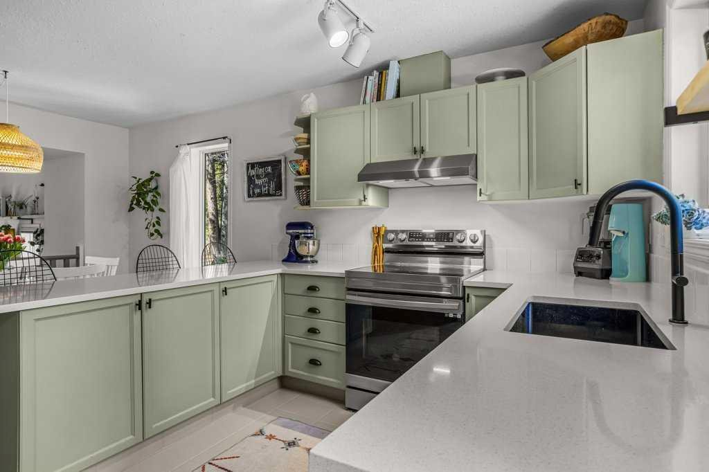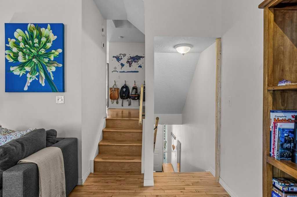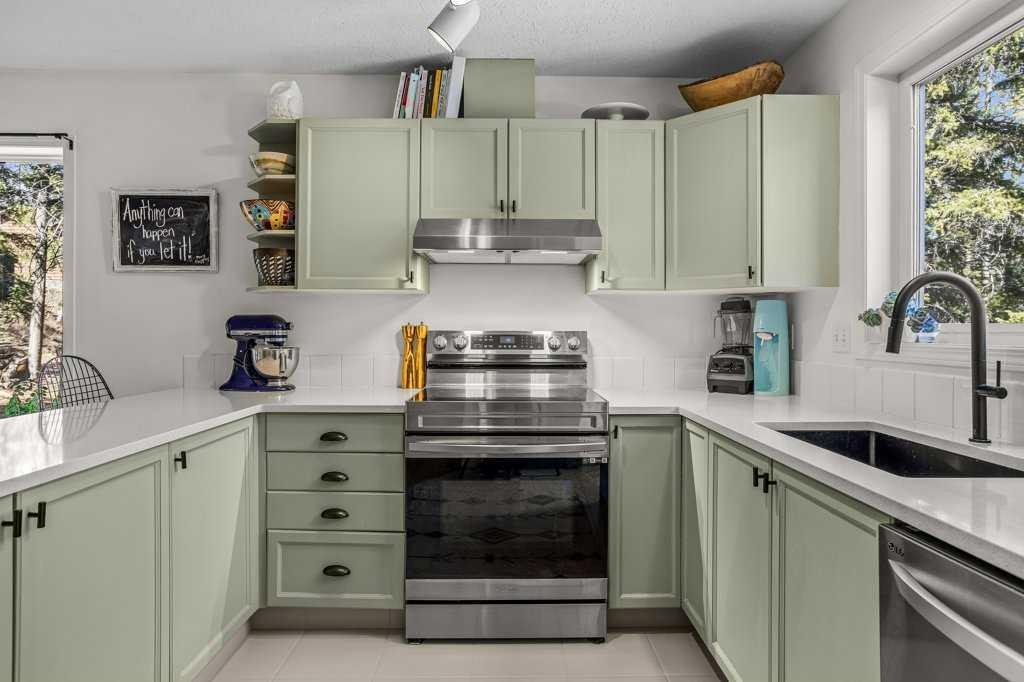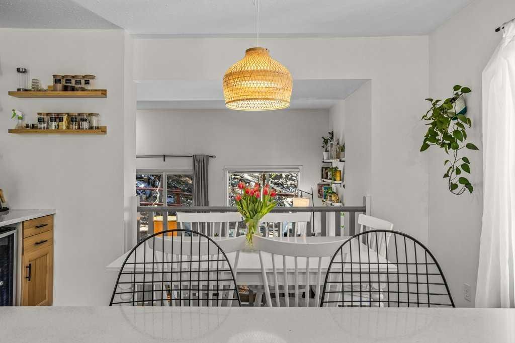 Situated in Rundle Mountain Estates, this well-maintained end-unit townhouse offers a serene forest setting and a quiet, private mountain retreat. With three bedrooms on the upper level and multiple living areas across three levels, the layout is ideal for families or a weekend escape. The bright, open-concept main floor features a functional kitchen, spacious dining area, and inviting living room with a cozy gas fireplace, while large windows bring in natural light and views of the surrounding trees. A two-piece bathroom completes this level. Upstairs, the primary suite includes a walk-in closet, ensuite, and private balcony, alongside two additional bedrooms and a full bath. The lower level provides flexible space for a family room, media area, or extra bedroom, plus laundry and storage. Complete with multiple outdoor spaces, an oversized single garage, and close proximity to Quarry Lake, the Nordic Centre, and downtown amenities.