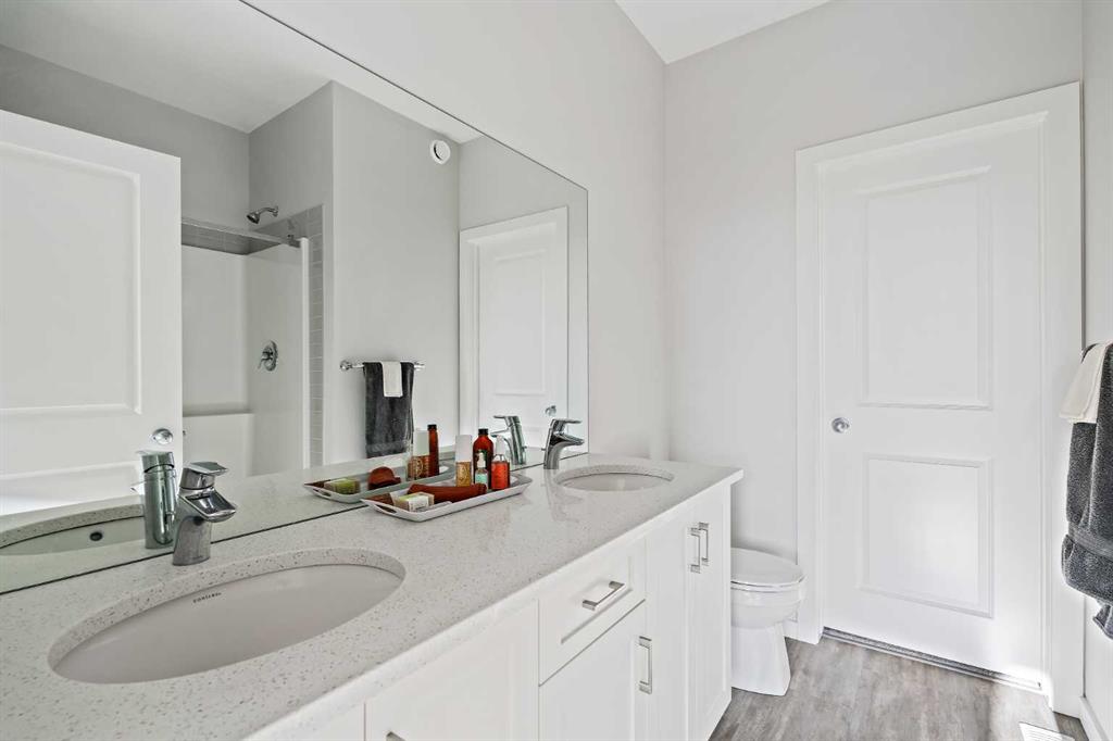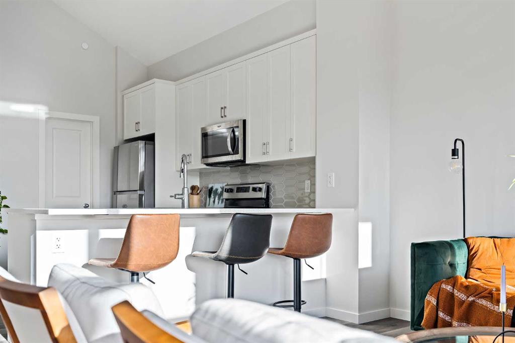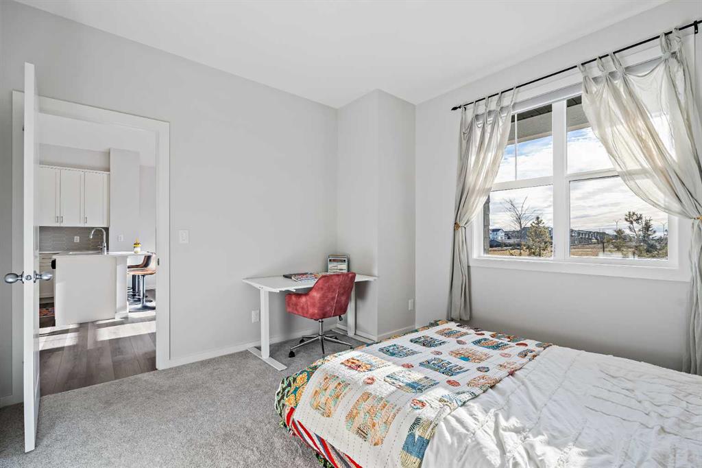 An exceptional opportunity to own a one-of-a-kind, maintenance-free townhouse overlooking green space in the vibrant community of Livingston. Offering nearly 1,000 sq. ft. of single-level living, this meticulously maintained home blends comfort, functionality, and timeless design. The grand main living area features resilient luxury vinyl plank flooring and a soaring vaulted ceiling spanning the living room and kitchen, creating a bright and airy atmosphere enhanced by large windows and South-facing exposure that flood the space with natural light. The living room is positioned at the front of the home, where expansive windows overlook the peaceful green space, providing a serene and private setting. The spacious kitchen showcases timeless white shaker cabinetry, stainless steel appliances, quartz countertops, a central peninsula island with a breakfast bar, a corner walk-in pantry, and abundant storage. There is ample room for a flexible dining area, making the space ideal for both everyday living and entertaining. Overlooking the living room, the kitchen layout is perfect for hosting or for those with young children. Completing the main level is a rear mudroom with direct access to the attached garage, a convenient 2-piece powder room, and a dedicated laundry room. The spacious primary bedroom is also located at the front of the home, offering additional green space views. It features a generous 4-piece ensuite with dual sinks, a walk-in shower, and a walk-in closet with upgraded shelving. The lower level awaits future development, offering excellent potential for a large recreation room, additional bedroom, bathroom, and storage space. An insulated attached garage completes the home, keeping your vehicle secure and clean year-round. This home is ideally situated with nearby shopping, restaurants, and cafes all within walking distance or a short drive.. Daily commuting is made easy with nearby public transit stops and quick access to Stoney Trail. Don’t miss this opportunity to own a fantastic, low-maintenance property in one of Calgary’s most desirable communities – Livingston.