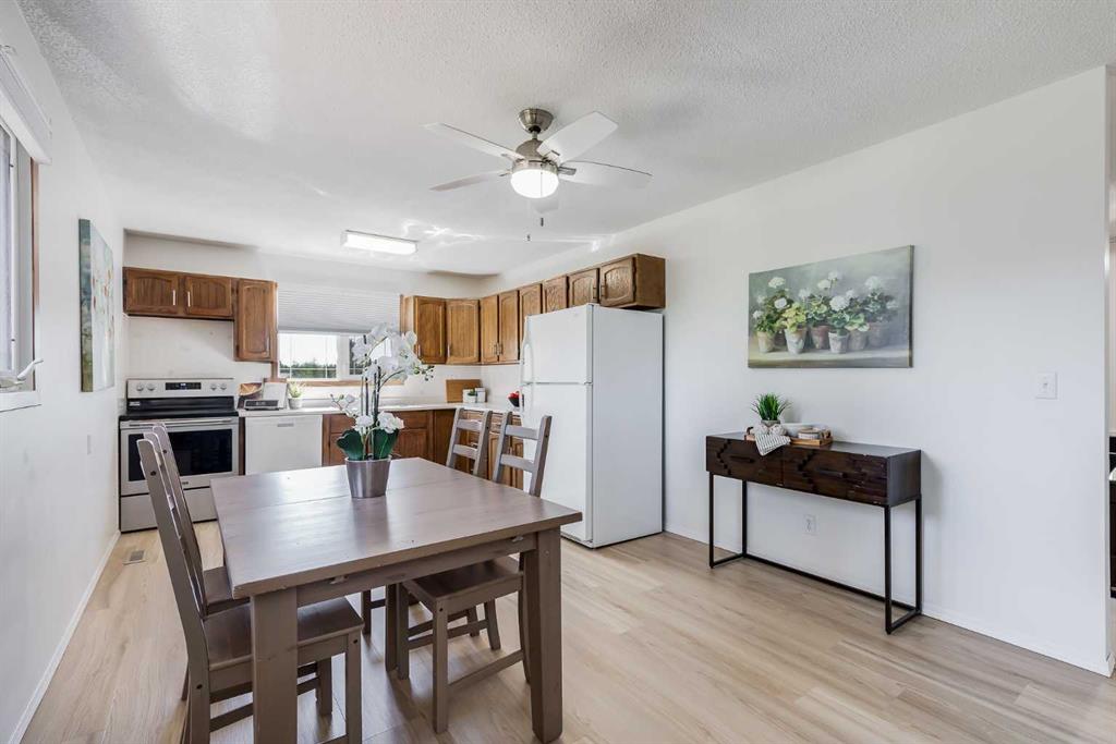 Welcome to this bright and spacious home, situated on a quiet street steps away from a green space. This classic bi-level comes with a newer roof and wood siding for durability. The spacious living room has a beautiful wood fireplace surrounded by brick, mimicking the stylish front entrance. The eat-in kitchen has ample space to design the kitchen of your dreams, if desired. Outside, the large deck overlooks the huge backyard, making it perfect for entertaining. There are three bedrooms upstairs, including the primary bedroom, which is complete with an ensuite. Relax in the main bathroom with newer flooring and a relaxing soaker tub. Downstairs, the massive basement has large windows for an abundance of natural light, a laundry room, a bathroom, and two additional bedrooms that can also be used as a flex room. Enjoy the convenience of being in the family-friendly town of Didsbury, just 25 minutes north of Airdrie, and 45 minutes away from Red Deer. Schedule your private showing today and discover all that Didsbury has to offer.
