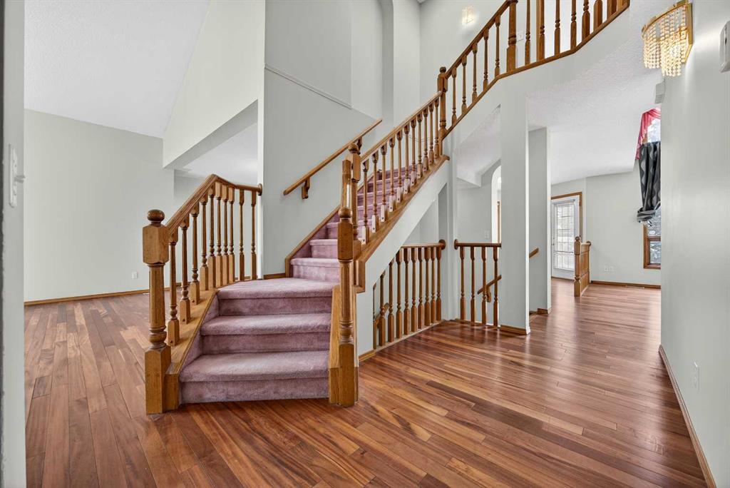 Located in the prestigious Hawkwood community, this beautiful maintained two-storey walkout home offers over 3100 SqFt of developed living space, ideal for a growing family. With 3+2 bedrooms, 3.5 bathrooms, 1 office, and thoughtful feature throughout, this home provides a kid walk safety to school. Upon entering, you’ll be captivated by the impressive ceiling in the foyer. The formal living room features a large window and vaulted ceiling, flooding the space with natural light , and is adjacent to the formal dining. The spacious kitchen includes a corner pantry and central island, featuring a large window the overlooks the backyard and playground behind. The generous family room boasts a high ceiling, bay window providing a great view of the park, and a built-in bookcase with gas fireplace. The main floor has a den that can serve as a home office or guest room. The mud room with laundry and sink, a half bathroom. Upstairs has a master bedroom with some windows, 4 pc ensuite, along with a large walk-in closet. Two additional bedrooms, each with a spacious closet, and a 4 pc bathroom with skylight to complete this level. The fully developed walkout basement offers a large rec room, a full bathroom and two more bedrooms. Enjoy the landscaped backyard that is perfect for outdoor activities and relaxation. You can walk through the backyard gate to green space and playgroud. Conveniently located within walking distance to public transit, school, gas station, this location is perfect for family seeking both conenience and tranquility. Don’t miss this opportynity to move into this well-established community and well- maintanined home. Upgraded recently: Fresh Printing(2026), New garage door(2025), Roof(2021)