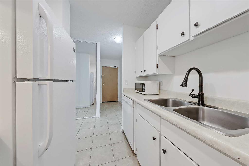Year-round sunny NW-facing balcony with gorgeous city AND mountain views! Over $25K in new interior updates, and it is perfectly move-in ready from all the updates! This bright and airy 2-bed, 1-bath corner unit offers exceptional value, comfort, and convenience in one of NW Calgary’s most established communities. Ideal for students, young professionals, first-time buyers, or investors looking for a high-income, low-maintenance property near the University of Calgary, Foothills Hospital, Children’s Hospital, Market Mall and the new Calgary Cancer Centre can be extremely recession-resistant in your rental portfolio. Inside, a welcoming foyer with an oversized storage closet leads into a functional, well-planned layout designed for easy living. The kitchen features all of the essential appliances, including an updated stove, ample cabinetry with updated hardware, and a dual-basin stainless steel sink. The adjacent living room is bright and spacious, framed by large windows that fill the space with ample natural light. Step directly onto the private balcony to enjoy fresh air and beautiful mountain views, great for unwinding after a long day. Both bedrooms feature newly carpeted floors, creating comfortable and quiet retreats. The 4-piece bathroom features a vanity with storage, a tub/shower combo with tile surround, and tiled flooring. Additional updates throughout the home include laminate flooring in the living area, freshly patched & painted walls and ceilings, painted baseboards, and more! Plus, the oversized storage room off the foyer could accommodate future in-suite laundry if desired. Adding even more value, this unit includes an assigned covered parking stall in the parkade, a rare and highly desirable feature for this building. Residents of The Fortress enjoy fantastic amenities, including an indoor saltwater swimming pool, fitness center, and tennis courts. Secure bike storage is also available. Located steps from the Dalhousie C-Train station, shopping, restaurants, and parks. And with quick access to major routes, the University of Calgary and SAIT, Market Mall, Foothills Medical Centre, and downtown, you’ll be where you need to be in a breeze. This condo offers an unbeatable lifestyle and excellent long-term value. All that’s left to do is move in!