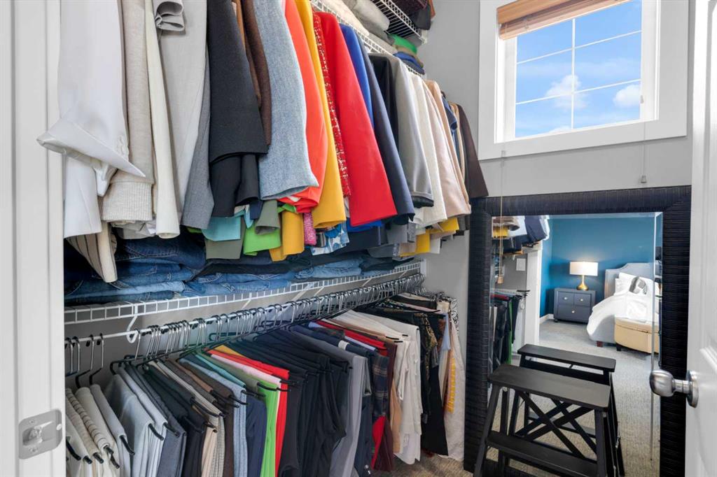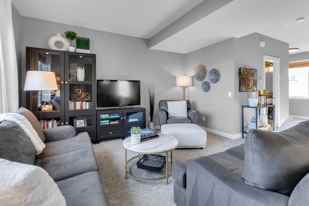Trendy, professionally renovated, very well kept 2 bedroom, 2.5 bathroom end unit townhome with single attached garage in sought after Wentworth in West Springs. Several modern updates have been done to this beautiful home over the past 4 years including a full kitchen renovation, all 3 bathrooms have been renovated, new flooring throughout including all carpet and tile, new paint, new light fixtures, new garage door opener, and new hot water tank. The bright main level has an excellent layout and features the fully renovated kitchen with grey shaker cabinets, quartz countertops, under cabinet and above cabinet lighting, and heated tile floor. Off of the kitchen is the utility room with storage space and shelving that works well as a pantry. The kitchen opens to the dining room with large windows, and the spacious living room is beside the dining room with plenty of space for furniture and access to the balcony. The corner balcony is large enough for your BBQ and outdoor furniture. Completing the main level is the powder room with laundry and storage closet, and a bright nook that offers the perfect space for a home office or reading area. The upper level has 2 primary suites with the larger of the 2 offering space for a king size bed and side tables, black-out curtains, a balcony, walk-in closet and the fully renovated ensuite. This bathroom features heated tile flooring, a trendy vanity, fully tiled shower/tub, and modern lighting and mirror. The 2nd primary suite has a walk-through closet and an updated 3 piece ensuite bathroom. The convenient attached single garage is oversized, insulated and drywalled, and the full size driveway allows parking for a second vehicle. This well run complex is pet friendly, offers visitor parking within the complex, street parking on Wentworth Drive, and is conveniently located within walking distance to many of the amenities along 85th Street including grocery stores, restaurants, and coffee shops. Great access in and out of the neighbourhood, out to the mountains, to the ring road and to downtown. If you are looking for a renovated home with plenty of natural light, an attached garage in a well run complex, then this trendy home is for you!