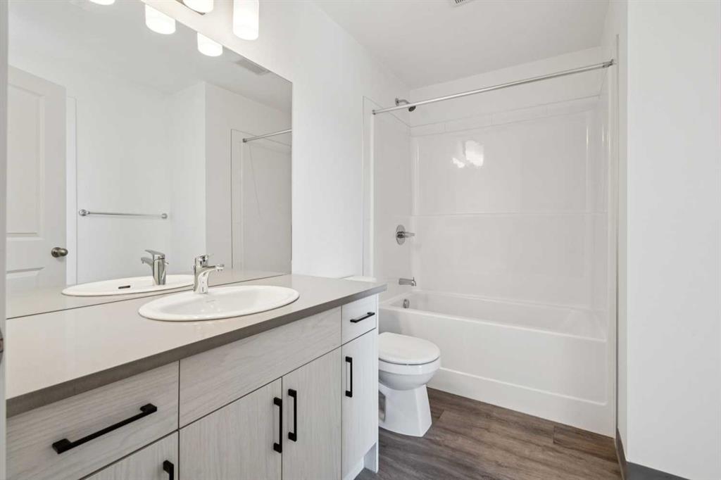 Discover the charm of contemporary living in this thoughtfully designed townhome. Filled with natural light from ample windows, the open-concept layout spans three inviting levels and offers beautiful mountain views. The stylish kitchen includes sophisticated white cabinetry, quartz counters, a generous island, and stainless steel appliances. Offering 1 bedroom, 1 bath, and a cheerful, versatile den, this home provides flexible living spaces. The primary bedroom boasts ample storage and direct access to the main bath featuring a luxurious 4 piece bathroom. Features include vinyl plank floors, upper-level laundry, complete blinds, a single garage, and driveway plus street parking. Enjoy nearby pathways, local shopping, and convenient access to both Calgary and mountain adventures.