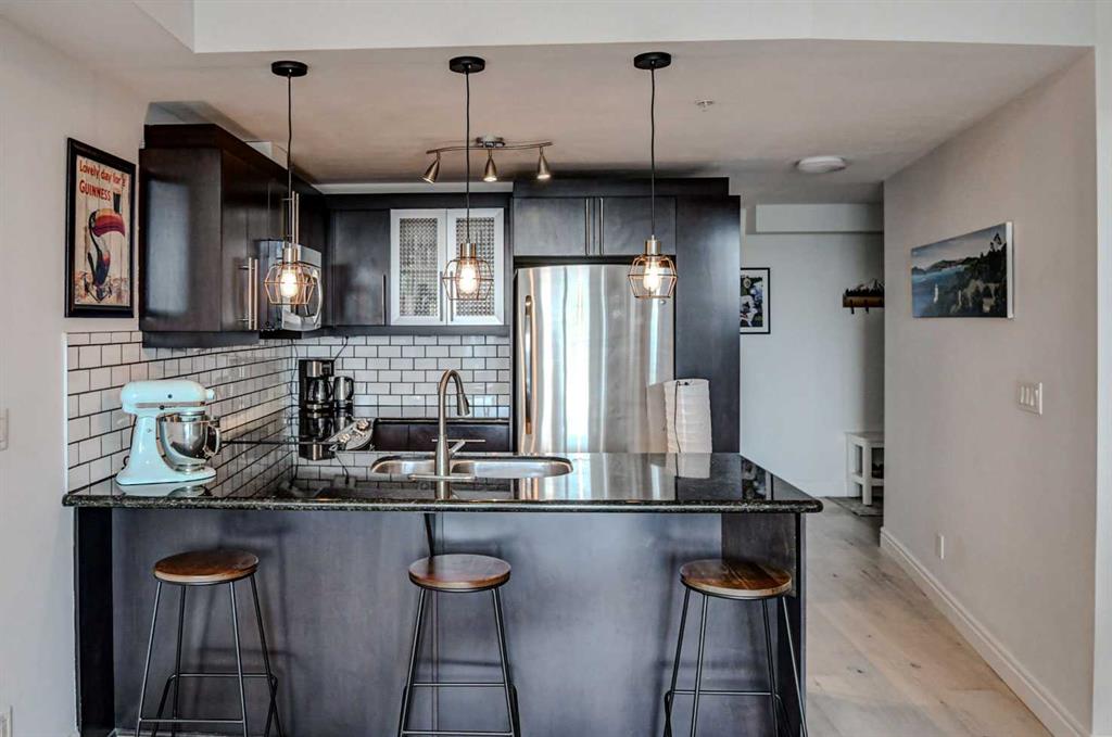 Located in the prestigious Montana, this 28-storey high-rise has low condo fees and was built in 2009. Includes Central A/C, heated titled Underground secure parking and storage, South facing views of the Calgary skyline, dark hardwood, granite countertops, in-suite laundry and 9′ ceilings. Residents enjoy full-time concierge, a newly renovated gym with cardio and universal machines, three high-speed elevators, and a garbage chute on every floor. Just steps from Uptown 17th Ave & Mount Royal Village, brimming with restaurants, cafĂ©s, nightlife, boutiques, and services. Walk score: 100/100, Transit: 77, Bike: 96—ideal for downtown living