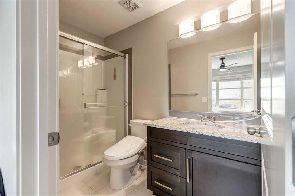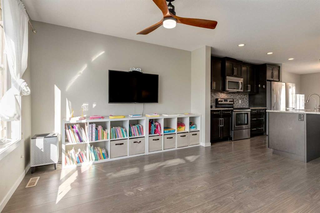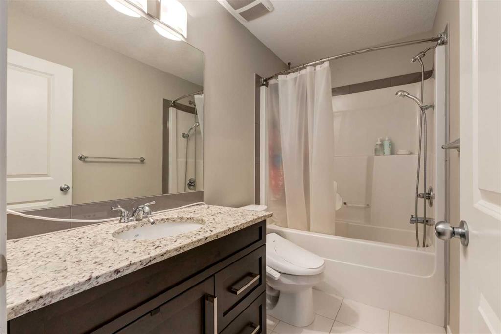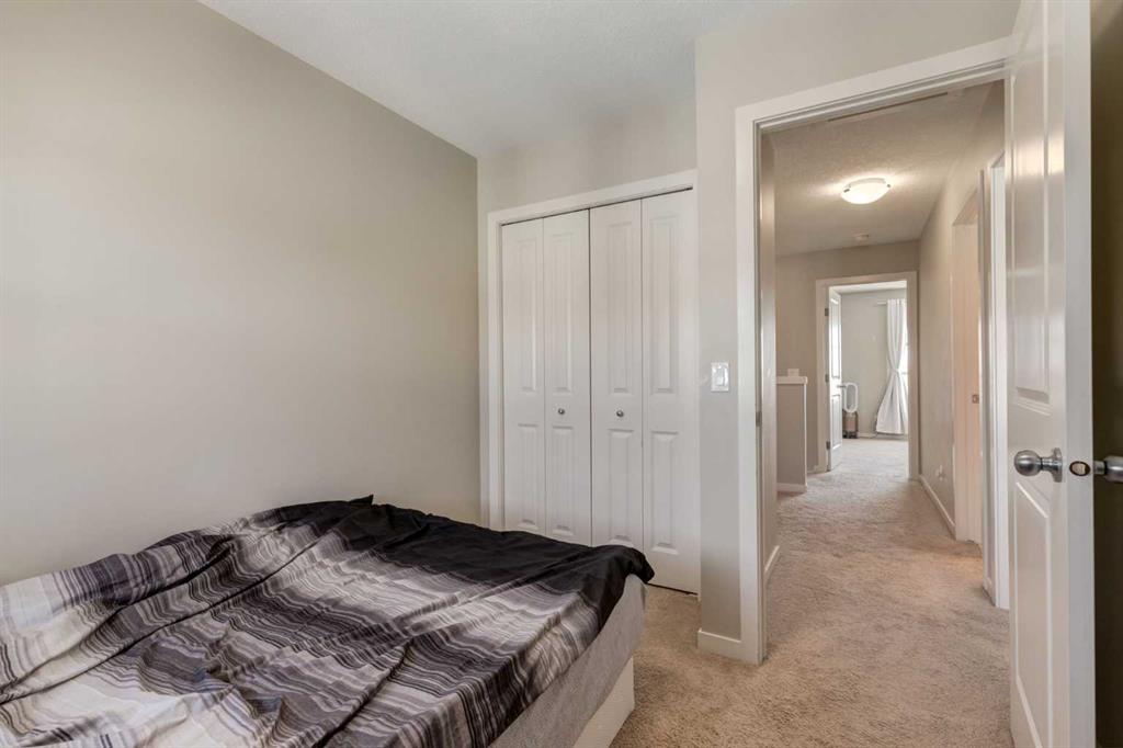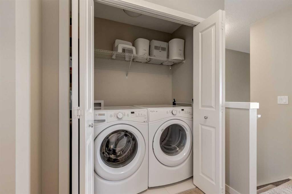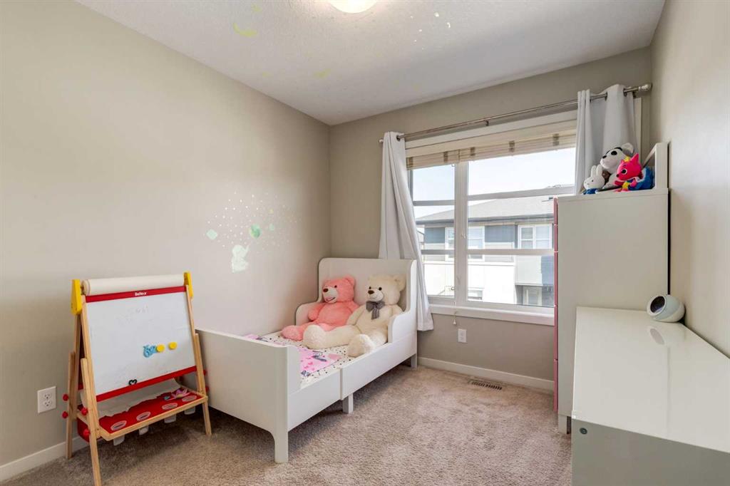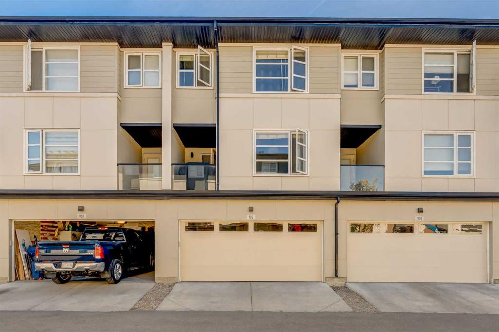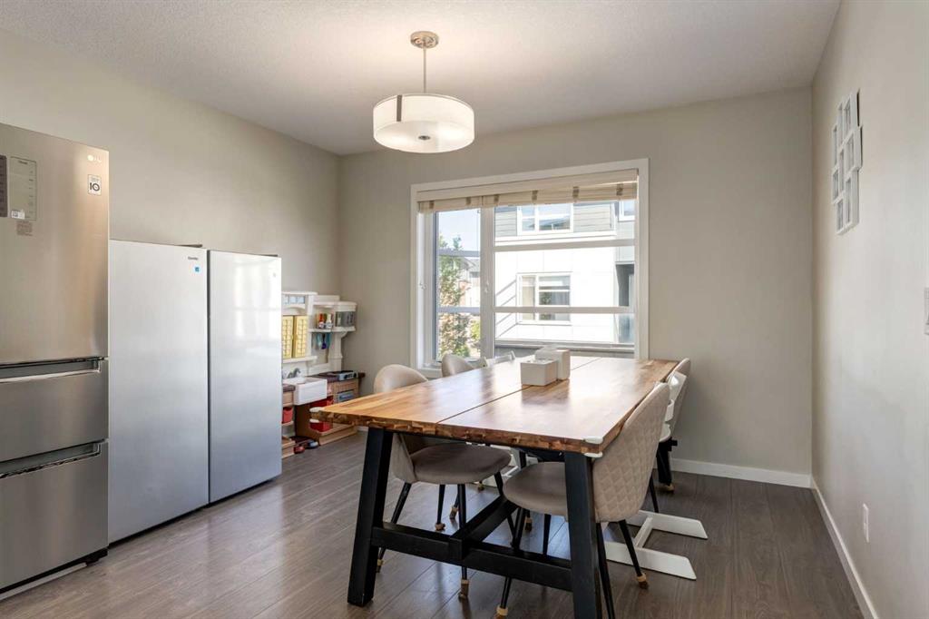 Enjoy breathtaking ravine and green space views from this beautifully maintained 3-bedroom, 2.5-bathroom townhome in Vantage on Evansridge. With nearly 1,541 sq. ft. of finished living space, a double attached garage, and low condo fees, this home offers outstanding value compared to nearby single-family houses. From the private front patio, step into the main floor featuring a versatile bedroom that can also serve as a home office or den, along with direct access to the garage. Upstairs, the open-concept second level is anchored by a stylish kitchen with a large granite island, stainless steel appliances, dark-stained maple cabinets, and a spacious pantry. The kitchen flows seamlessly into the dining area and bright living room, where expansive windows frame the stunning ravine views. A balcony with a gas line and a convenient half bath complete this level. The top floor offers three bedrooms, two full bathrooms, and laundry. The primary suite features a walk-in closet and a beautifully upgraded ensuite with a double shower. Additional highlights include Hunter Douglas window coverings, a water softener, and an insulated garage that easily fits two vehicles. This move-in ready home is surrounded by natural pathways, playgrounds, and green space, with Our Lady of Grace School, transit, and quick access to Stoney Trail and Deerfoot nearby. With incredible views, modern finishes, and a fantastic location, this is the perfect place to call home. Click the Virtual Tours for more detail!