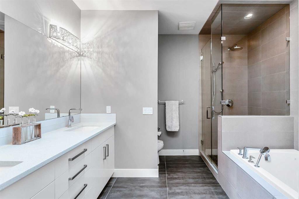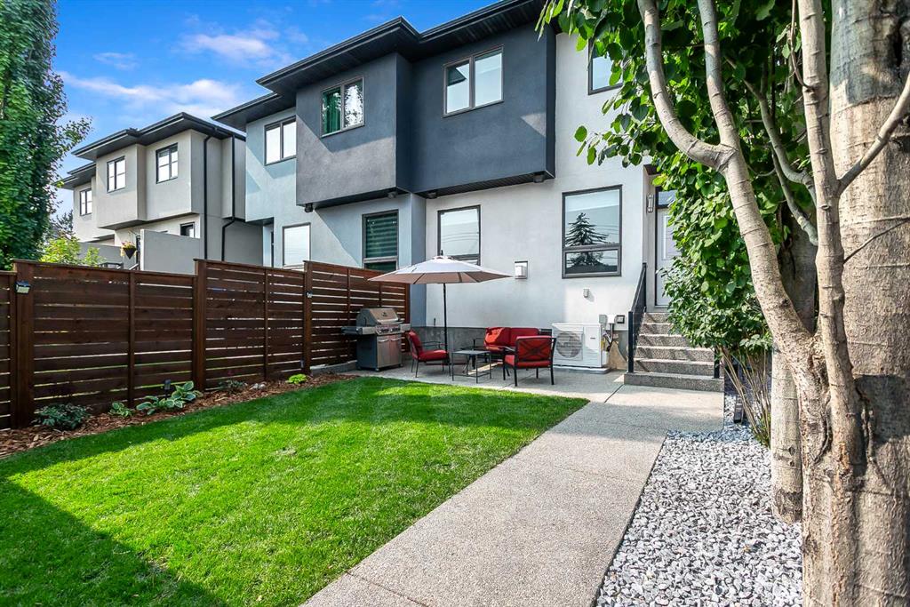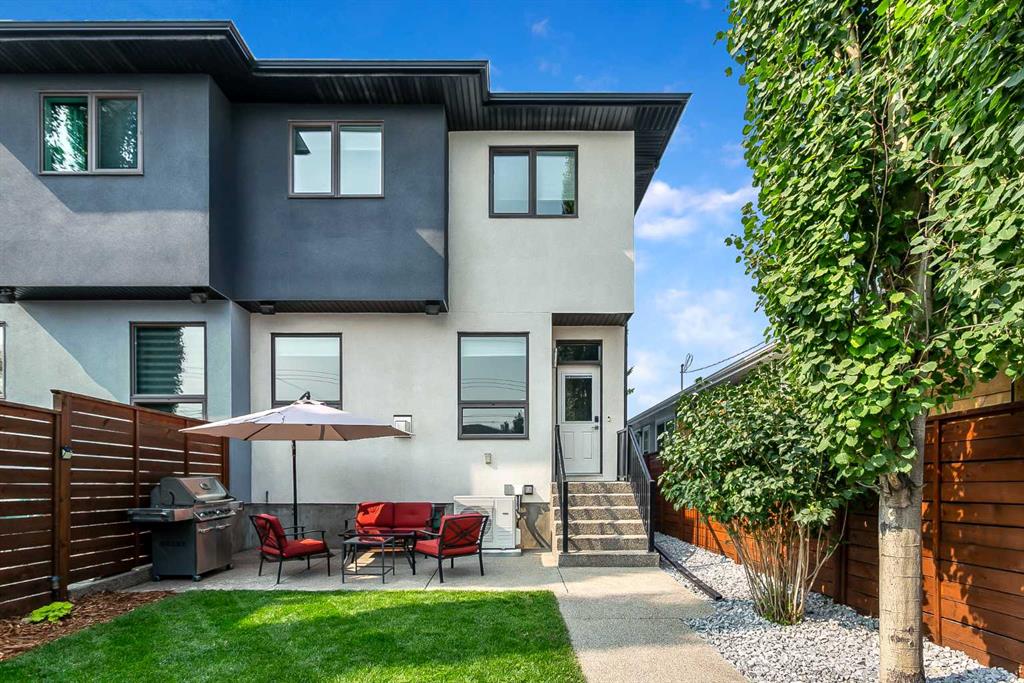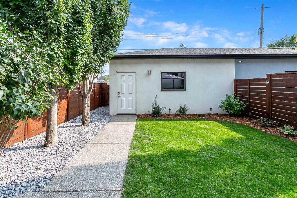 This gorgeous home is in a phenomenal location in the mature community of Rosscarrock, within walking distance to schools, parks, Westbrook mall, the LRT station, the Nicholls Family Library, and the community hall. The property has meticulous landscaping and a private backyard oasis. Beautiful wide plank engineered hardwood floors, tall 9’ ceilings, 8’ doors and an abundance of natural light provide a warm and welcoming first impression. The front flex room overlooking the street offers versatility as a formal dining room or home office. Culinary creativity is inspired in the stunning chef’s kitchen featuring quartz countertops, full-height cabinetry, dove tail drawers, a gas cooktop, high-end Dacor stainless steel appliances, and a large centre island with seating. A centred floor-to-ceiling tile fireplace flanked by windows invites everyone to gather in the living room, where built-in speakers set the mood for relaxing or hosting. Step outside to the ground-level patio, complete with outdoor speakers and a BBQ gas line for convenient entertaining. This private outdoor space is surrounded by lush landscaping and mature trees, all tucked behind the double detached garage. Practical design continues with an enclosed mudroom to keep seasonal clutter hidden away. A sunny skylight illuminates the stairway leading to the upper level. Convenient upper floor laundry has ample storage, folding space, and a sink. The primary suite is an indulgent retreat with a spacious layout, a custom walk-in closet, and a luxurious ensuite featuring dual vanities, a deep soaker tub, a separate 10mm shower, and a skylight for endless natural light. Two additional bedrooms (one with its own walk-in closet) share the well-appointed 4-piece main bathroom. The basement is ready for your dream development with two windows, 9’ ceilings, and a 3-piece bathroom rough-in. Additional upgrades include a brand-new central air conditioning unit (the quietest version available), freshly painted throughout, Grohe faucets throughout, central vacuum, triple-pane windows & custom window coverings. This beautiful yet practical home truly has everything on your wish list, plus an unbeatable location close to 17th Avenue and Bow Trail while still being sheltered from the noise, giving you the best of both worlds.