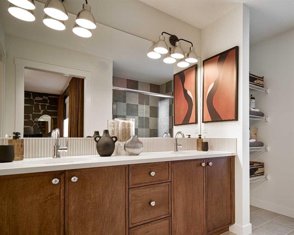 SHOW HOME FOR SALE! Welcome to The Belvedere Show Home in the vibrant community of Chinook Gate – where thoughtful design, elevated finishes, and everyday functionality come together beautifully. Built by Brookfield Residential, this professionally designed show home offers a rare opportunity to own a home loaded with premium upgrades and designer details throughout. Step inside and you’re immediately greeted by a bright, open-concept main floor that blends modern style with comfortable living. The chef-inspired kitchen is the heart of the home, featuring upgraded two-tone cabinetry, quartz countertops, a large central island, and designer touches throughout – perfect for entertaining. The spacious dining area flows seamlessly into the inviting living room, where oversized windows fill the space with natural light and create a warm, welcoming atmosphere. The main level is complete with a 2pc bathroom and large mudroom. A striking spiral staircase leads to the upper level, where you’ll find a thoughtfully planned layout with generous bedrooms and a beautifully finished primary retreat designed for relaxation. The ensuite showcases upscale finishes and a spa-like feel and is complete with dual sinks, a walk-in shower and walk-in closet with ample storage. The upper level is complete with two more bedrooms, a full bathroom and a large laundry room for added convenience to everyday living. The professionally developed basement adds more flexibility and living space with an expansive recreation room, fourth bedroom and full bathroom. The perks of purchasing a show home are a rare find and include a professional and cohesive design throughout including wallpaper, custom window treatments, upgraded lighting, central air-conditioning, and much more. Step outside to your private landscaped backyard providing a move-in ready home that you can enjoy right away! Completing this fully upgraded and fully developed home is a double detached garage to keep your vehicle and valuables safe all year long. Every corner of this show home reflects elevated craftsmanship – from designer lighting, to upgraded cabinets, tile and flooring, this stunning new home is truly move-in ready. Located in family-friendly Chinook Gate, which offers parks, pathways, playgrounds, and easy access to schools, shopping, and commuter routes – this is the perfect family home with space to grow. Whether you’re looking for a stylish move-up home or simply want the benefits of show home quality without the wait. The Belvedere delivers exceptional value, comfort, and design. Builder warranty + Alberta New Home Warranty is included with the purchase of this brand new home!