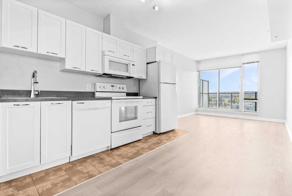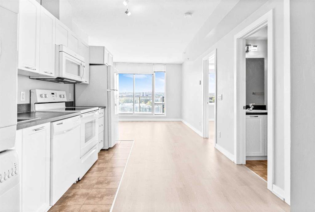 First time on the market! Welcome to this bright 9th floor corner unit in the highly sought-after University City community, offering unobstructed southern views of the Rocky Mountains. Perfectly situated for students, medical staff, and busy professionals, this 2 bedroom, 1 bathroom condo combines modern comfort with unmatched convenience. The open-concept layout features floor-to-ceiling windows, high ceilings, and a sleek white kitchen flowing seamlessly into the living and dining areas with access to a private balcony. Both bedrooms are generously sized with ample closet space, while in-suite laundry, central A/C, and an assigned storage locker provide everyday ease. Building amenities include bike storage, a meeting room, and visitor parking. Prime location places everything at your doorstep! Brentwood LRT for a quick commute to the University of Calgary, SAIT, and downtown; Foothills Medical Centre and Alberta Children’s Hospital just minutes away; and endless shopping, dining, and services at Brentwood Village and Northland Mall. Safeway, Co-op, London Drugs, Starbucks, Village Ice Cream, gyms, pubs, and restaurants are all within walking distance, with Nose Hill Park and UCalgary’s recreation facilities nearby for fitness and outdoor enthusiasts. Vacant and ready for immediate possession, this condo is an exceptional opportunity for those seeking a low maintenance lifestyle in a prime, transit connected location.