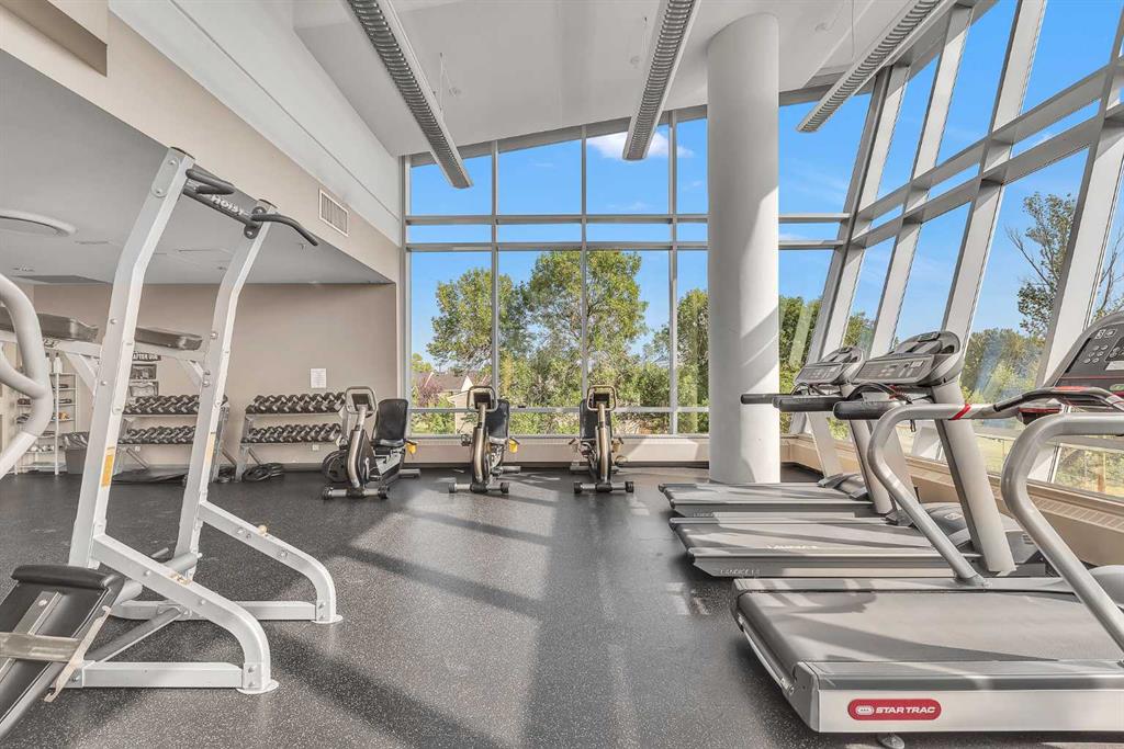 Ideally located just off Bow Trail, this bright and spacious 3-bedroom condo offers scenic golf course views and exceptional convenience. The open-concept layout seamlessly connects the kitchen, dining, and living areas, highlighted by a cozy corner fireplace and patio doors that lead to a large private balcony—perfect for relaxing or entertaining. The kitchen is complemented by a versatile flex room, ideal for a formal dining area or home office. Tile flooring enhances the foyer, kitchen, and bathrooms, while plush carpeting adds warmth and comfort throughout the main living spaces. The primary bedroom features a 4-piece ensuite and a generous walk-in closet. Two additional bedrooms and a full main bathroom are conveniently located down the hall. Residents enjoy premium building amenities, including an indoor swimming pool, hot tub, fully equipped fitness centre, stylish lounge area, and 24-hour security for added peace of mind. Unbeatable access to Westbrook C-Train Station, Westbrook Mall, nearby restaurants, and extensive walking and biking paths. Just minutes from downtown, this home offers the perfect balance of tranquility and urban convenience. ***SEE VIRTUAL TOUR***