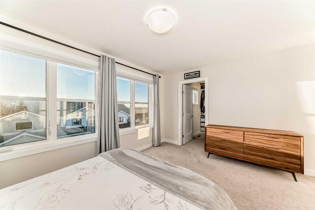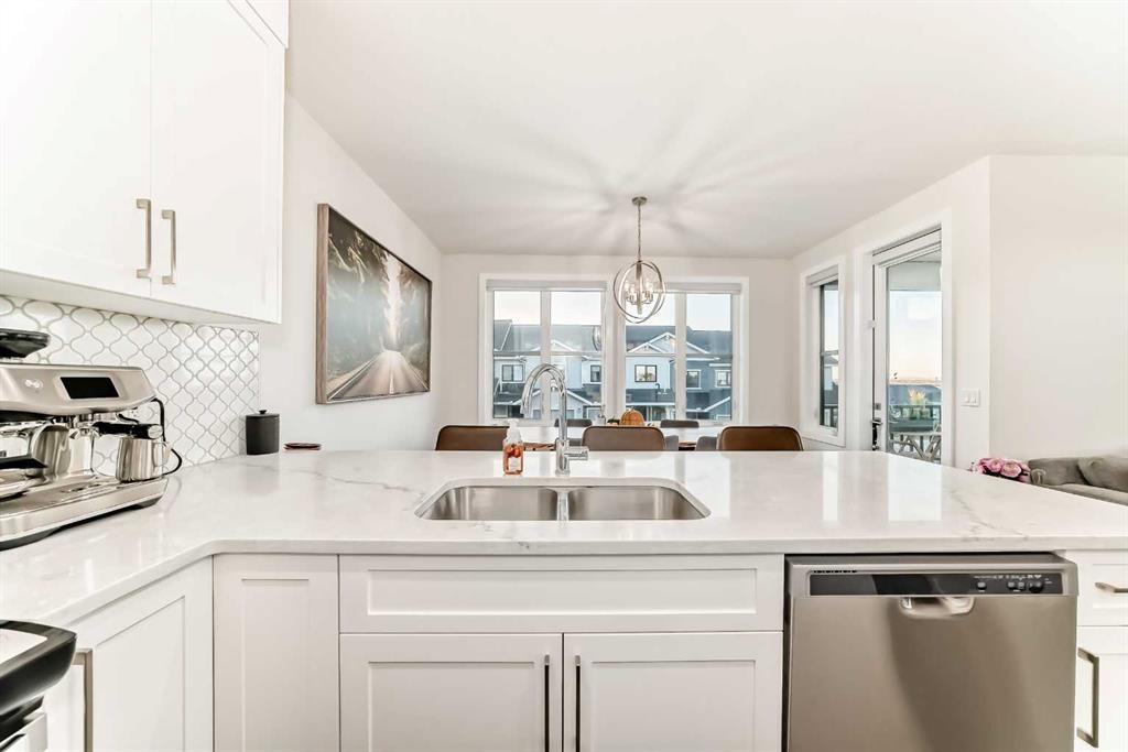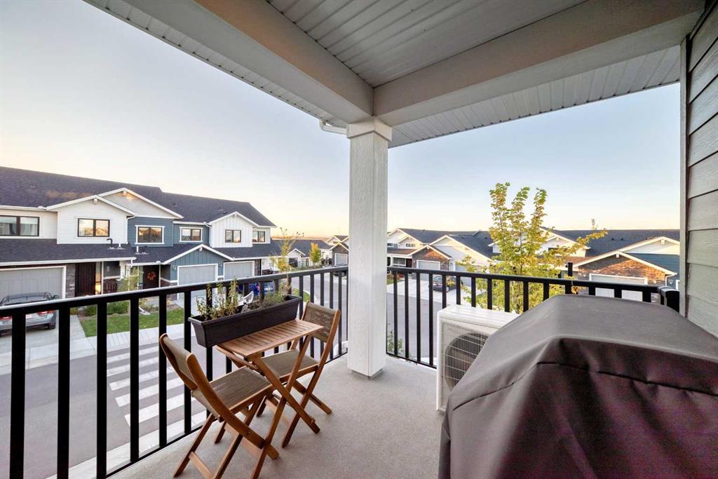 The sleek kitchen showcases stainless steel appliances, ample cabinetry, and elegant finishes, opening onto a balcony with sunset views. Upstairs, the primary suite impresses with a walk-in closet complete with built-in organizers, while two additional bedrooms provide plenty of room for family or guests.