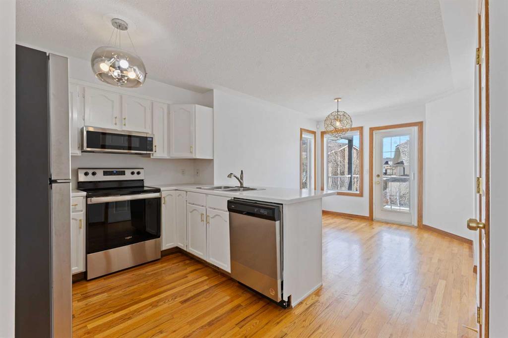 This FULLY DEVELOPED BI-LEVEL offers a smart layout, cozy updates, and a WALK OUT BASEMENT that opens up real options, whether you’re looking to live, rent, or do both. Sitting directly ACROSS FROM A PARK, this home gives you the quiet comfort of a family-friendly street with green space just steps away. Upstairs, you’ll find a BRIGHT, FRESHLY PAINTED space with NEW LIGHT FIXTURES, HARD WOOD FLOORS, and a living room that feels warm and inviting the moment you walk in. The kitchen has had a refresh too—CABINETS PROFESSIONALLY PAINTED with NEW HARD WARE, plus a NEW MICROWAVE HOODFAN that vents outside and a NEWER STOVE to make daily cooking a breeze. Just off the dining area is your BALCONY overlooking the BIG SUNNY SE-FACING BACKYARD—perfect for summer BBQs, a quiet coffee, or watching the kids play below. The upstairs layout is ideal for privacy. The BIG PRIMARY BEDROOM features a CHEATER DOOR to the 4-PIECE BATHROOM, and thanks to the SKYLIGHT above, the whole space feels bright and open. The SECOND BEDROOM sits on the opposite side of the home with the bathroom in between, giving every one more space and quiet. Downstairs is where the value really shines. The WALK OUT BASEMENT offers a SEPARATE ENTRANCE—ready for roommates, extended family, or to turn into a LEGAL SUITE that could generate around $1,000/month (about the same as a $186,000 mortgage!). You’ve got a BEDROOM, FULL BATHROOM, a cozy GAS FIREPLACE, and a WETBAR with a BAR FRIDGE to top it off. The lower-level WINDOWS are generously sized so it doesn’t feel like a basement, and the LARGE UTILITY ROOM gives you extra storage space that’s hard to find. Outside, you’ll love the HUGE EXPOSED AGGREGATE PATIO with steps, perfect for entertaining. There’ s also a GARDEN SHED for your tools and toys, and the DOUBLE ATTACHED GARAGE is already DRYWALLED and ready to go. Located in SCENIC ACRES, this home puts you close to everything—SCHOOLS, CROWFOOT CROSSING for groceries, coffee, and a movie night, plus easy access to CROWCHILD and STONEY TRAIL to get anywhere fast. The CROWFOOT LRT with PARK & RIDE makes commuting downtown a breeze. This is one of those homes that just makes sense—smart upgrades, income potential, and a layout that fits real life. Come see it before someone else does! Estimated rental income of approximately $1,000/month is not guaranteed and should be independently verified by the buyer.