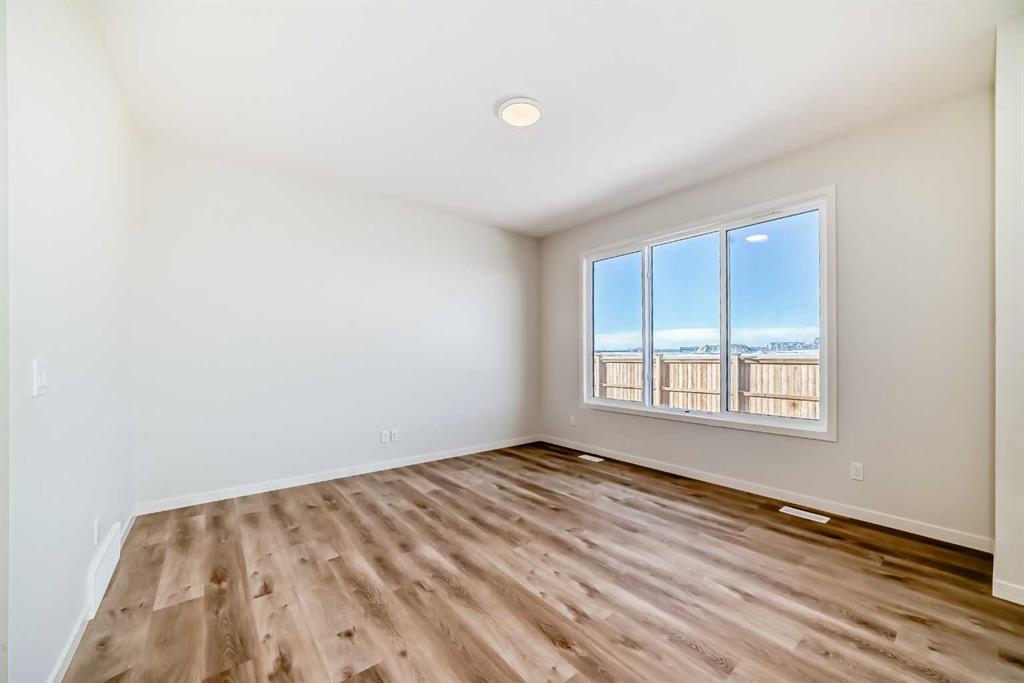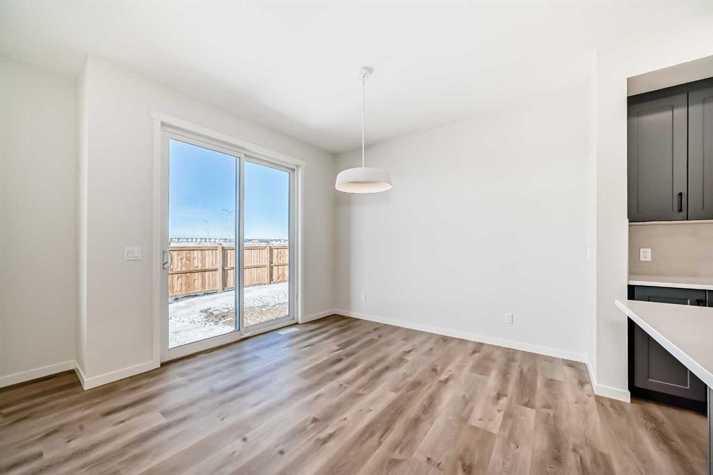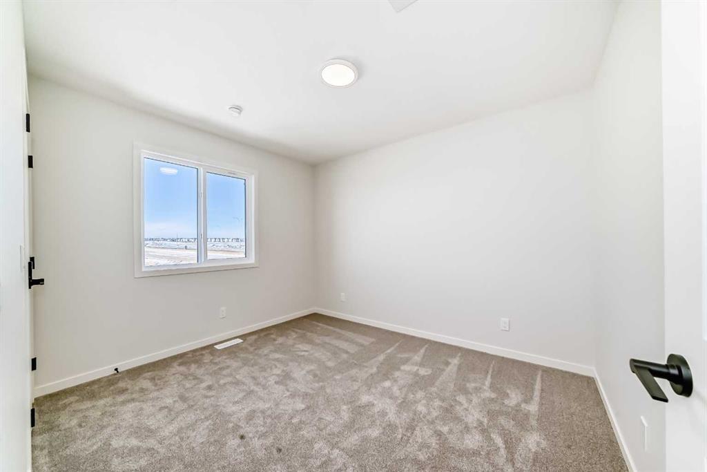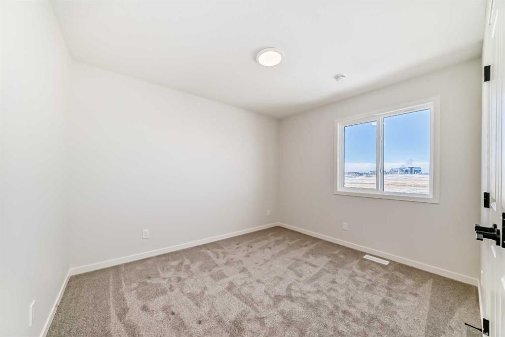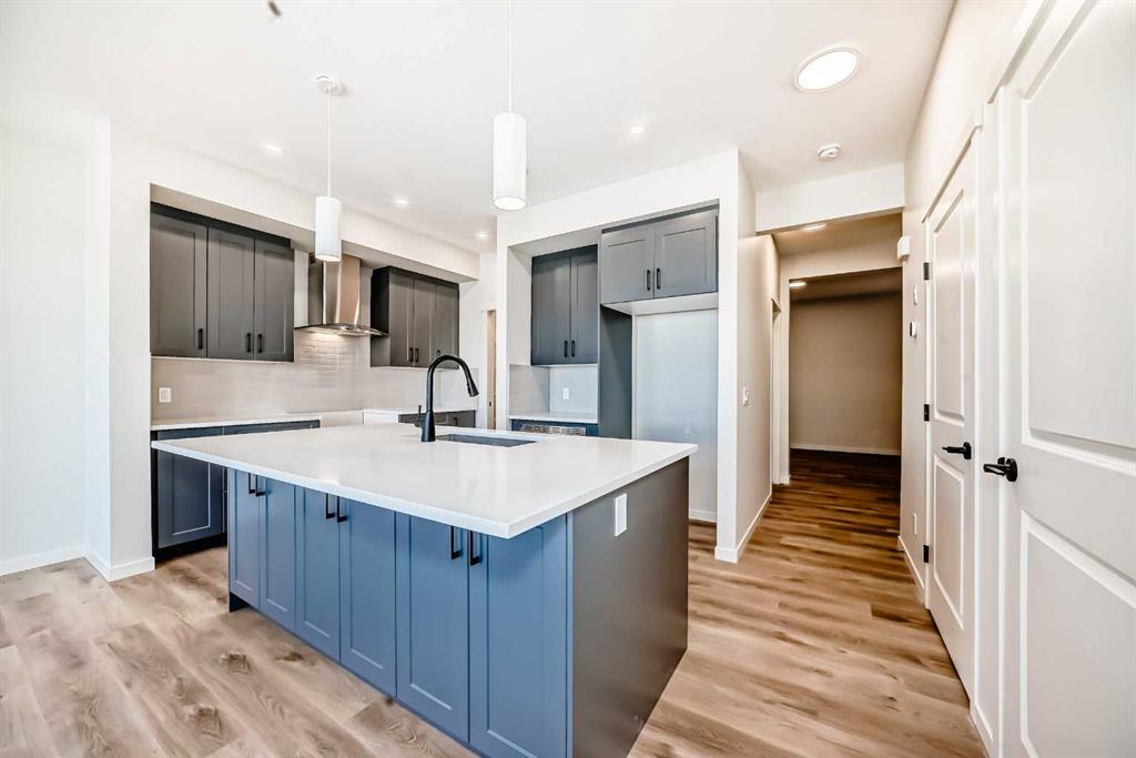 Welcome to the Kalara in Rangeview – a 4-bedroom family home where thoughtful design, modern finishes, and everyday comfort come together at an approachable price point. This beautifully crafted spec home is built for how families really live, offering a smart blend of functionality, flexibility, and style from top to bottom. The open-concept main floor creates a seamless flow between the kitchen, dining, and lifestyle areas—perfect for everything from casual weeknights to hosting friends and family. Large windows and a west-facing backyard flood the main living space with natural light all afternoon, giving the home a warm, inviting feel. Throughout the main floor you’ll find luxury vinyl plank flooring, providing a durable, low-maintenance surface that looks great and stands up to busy family life. At the heart of the home is a stylish, modern kitchen that truly shines. You’ll love the modern grey cabinetry paired with white quartz counters, a stacked subway tile backsplash, and black hardware that adds a clean, contemporary contrast. A sleek chimney-style hood fan, built-in microwave, and pot lights elevate the look and function, while the spacious island offers extra prep space and seating. The walk-in pantry keeps everything organized and close at hand, making meal prep and grocery storage a breeze. A main floor flex room adds valuable versatility—use it as a home office, study space, playroom, or hobby room depending on your needs. Upstairs, a centrally located loft provides even more flexibility, working perfectly as a cozy media area, kids’ hangout, or quiet reading space. The upper floor layout is designed with families in mind, featuring 4 bedrooms up plus the loft, so everyone has their own space. The primary suite is a relaxing retreat, complete with a generous walk-in closet and a gorgeous 5-piece ensuite with dual sinks, separate shower, and soaker tub. The kids’ wing is equally impressive, featuring a 5-piece main bathroom with double sinks—ideal for busy mornings and bedtime routines. Convenient upper floor laundry means no more hauling baskets up and down the stairs. Additional perks include a double front attached garage, providing ample parking and storage, and it’s roughed in for a future EV charger, making this home a smart choice for the future. The 9-foot foundation and separate side entrance offer excellent potential for future basement development (subject to city approval), whether you envision a guest suite, multi-generational space, or an income helper down the road. Located in Rangeview, Calgary’s first garden-to-table community, this home is part of a neighbourhood designed around connection, sustainability, and lifestyle. Enjoy parks, pathways, community gardens, and welcoming gathering spaces, all while being conveniently close to schools, shopping, and the South Health Campus. The Kalara offers the space, style, and community setting to support your family for years to come.
