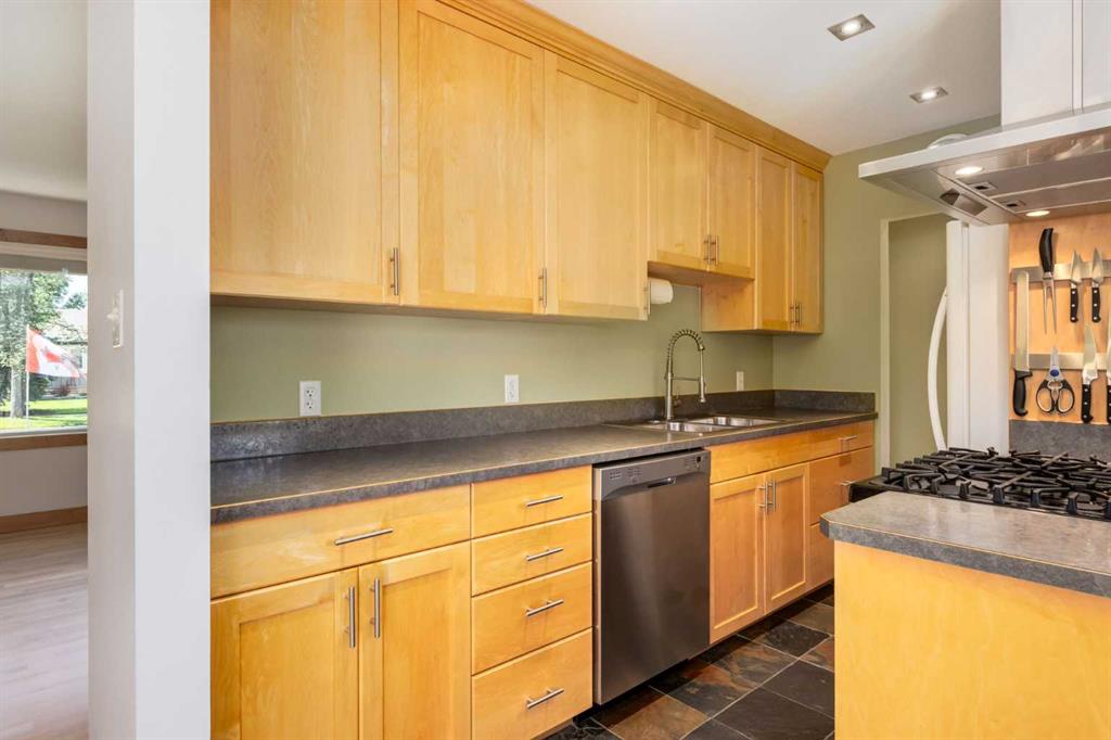 Step inside to a bright and inviting main floor. The spacious living and dining area are ideal for everyday comfort as well as hosting family and friends. The modern kitchen features custom-built maple cabinetry, slate flooring, and plenty of counter space with a functional layout that flows seamlessly into the dining area. The updates continue throughout with maple hardwood flooring on the main level and slate tile in the kitchen, bathroom, and entryways, adding both beauty and durability.