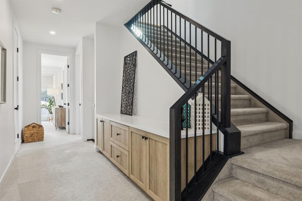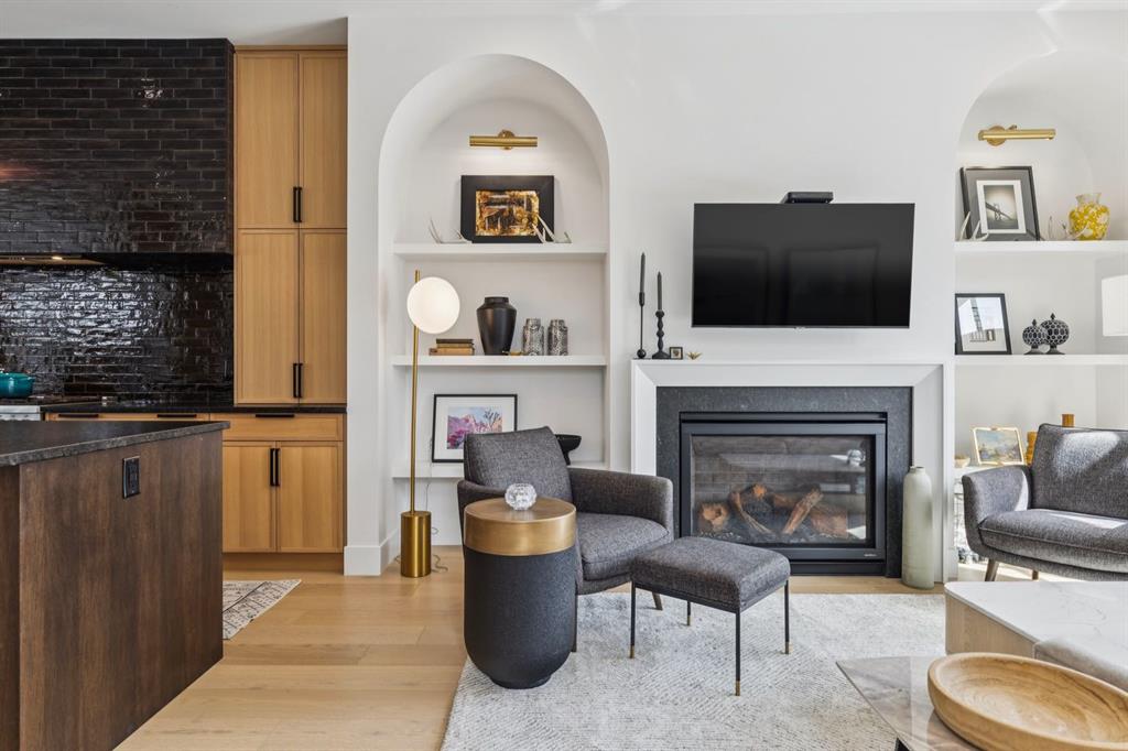 Just beyond, the living room offers a perfect blend of comfort and elegance, featuring a sleek fireplace with custom built-ins—ideal for both relaxing with family and entertaining guests. Completing this level are a convenient 2-piece powder room and a functional mudroom.