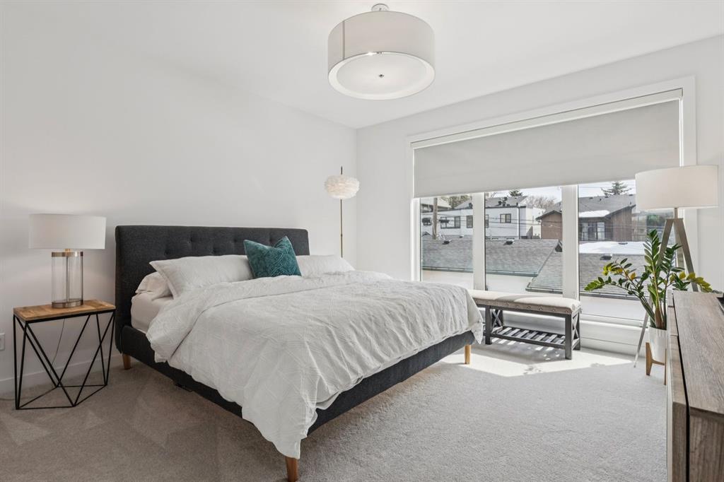 LUXURY & MOVE IN READY. Welcome to this 3 Storey Semi Detached with a legal suite located on a desirable street in the heart of Parkdale. Steps away from Foothills Hospital. This home has luxury finishes throughout with quality craftsmanship. The inviting main level welcomes you with the warmth of wide-plank hardwood floors, complemented by soaring 10-foot ceilings and chic designer lighting. An expansive front dining area sets the stage for memorable gatherings, seamlessly connecting to the heart of the home—the beautifully appointed kitchen. Here, you’ll find leathered granite countertops, an island with eating bar, a stylish dry bar, ample storage, with Fisher Paykel and Bertazzoni appliances, including an integrated fridge and dishwasher.