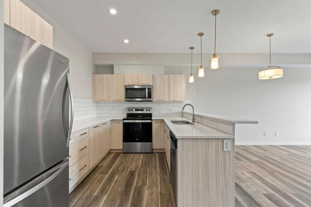 3-Storey Townhome | Single Attached Garage + Full Driveway | 1,487 SqFt | 2 Bedrooms | 2.5 Bathrooms | Modern Finishes | Quartz Countertops | Stainless Steel Kitchen Appliances | Raised Breakfast Bar | Open Floor Plan | High Ceilings | Incredible Natural Light | Upper Level Laundry | Spacious Bedrooms | Wide Plank Flooring | Incredible Location | Close to All Amenities | Near Saddlestone Pond & Walking Path | Minutes to CBE Hugh A Bennet School | Great Transit Access. Welcome to this stunning end unit 3-storey townhome with an open floor plan complimenting it’s large living space. Welcome home to this stunning 3-storey townhome in an incredible location and gorgeous open floor plan with expansive living space. The front door opens to the foyer with closet storage and your interior access to your single attached garage. Head upstairs to the 2nd level where you’ll find a bright and open concept kitchen, living and dining rooms. The kitchen is outfitted with sparkling quartz countertops, ample cabinet storage, stainless steel appliances and a raised breakfast bar for barstool seating. The vastness of this level is complimented by the high ceilings and the large windows. The dining area is paired with a nook that can be a dedicated dining space or maybe a hutch! The living room is a generous size and will easily fit your family’s comfortable furniture. This level is complete with a 2pc bath. The uppermost level holds 2 bedrooms, 2 bathrooms and laundry. The primary bedroom is paired with a walk-in closet and private 3pc ensuite bath with a walk-in shower. The 2nd bedroom is a great size! The 4pc bath has a tub/shower combo and single vanity with storage below. The upper level stacked laundry is tucked into a hall closet to not take any of your living space. The laundry closet has wire shelving for linen storage. The single attached garage holds the utility room and storage for your seasonal items! The full driveway is a great bonus for your second vehicle. This home is located to perfection! Steps from your home is the saddlelake pond with a walking path. The CBE Hugh A Bennet School is nearby and there’s great transit access too. Hurry and book a showing at this incredible home today!