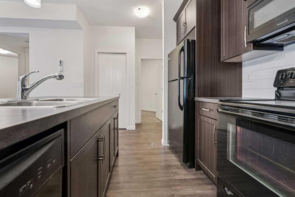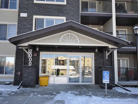 Bright & Contemporary Condo in Sought-After Sunset Ridge! Welcome to this beautifully appointed TWO-bedroom apartment located in The Trading Post of Sunset Ridge, a friendly and well-established community. Offering over 715 sq. ft. of thoughtfully planned living space, this home blends modern design with everyday practicality. The generous primary bedroom, open-concept layout, and inviting eat-in kitchen create a comfortable and functional living environment. Expansive vinyl windows and a patio door allow natural light to pour in, enhancing the bright, open feel throughout the unit. The second bedroom is ready for children, guest to to utilize as a home office, or quiet retreat, adapting easily to your needs, and has a full size closet. This fully sprinklered building provides added peace of mind, while in-suite laundry, a dedicated storage locker, and a heated underground parking stall add everyday convenience. Step onto the spacious covered balcony to enjoy serene southwest ravine views and glimpses of the mountains—an ideal setting to relax at the end of the day. The building boasts durable Hardie plank siding, attractive landscaping, secure underground parking, and well-maintained, light-filled common areas. Elevator access and multiple stairwells ensure easy movement throughout the complex. Unmatched convenience awaits with medical and dental clinics, a pharmacy, and retail services located right on the main floor, along with nearby restaurants, a convenience store, and a gas station just steps away. Experience exceptional value and a connected lifestyle in Sunset Ridge—this condo offers more than just a place to live, it offers a place to feel at home.