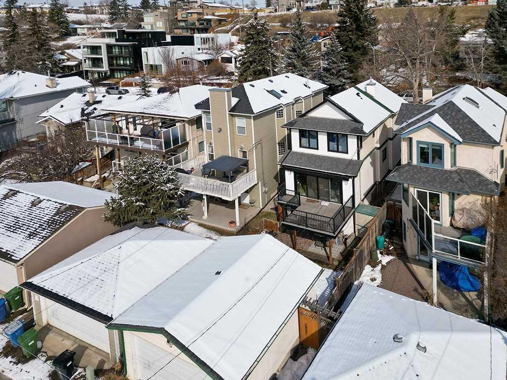 Welcome to one of the most desirable streets in Bridgeland. This beautifully renovated two-storey home. Featuring a fully developed walk-out basement and a south-facing backyard, ideally situated in the vibrant inner-city community of Bridgeland. Located just steps from boutique shops, restaurants, cafés, and everyday amenities, this property offers an exceptional walkable lifestyle combined with refined modern living. Offering three generously sized bedrooms above grade, this home has been thoughtfully designed to balance comfort and sophistication. The upper level presents a stunning primary bedroom with large windows that fill the space with natural light and provide views of downtown Calgary. The fully renovated ensuite bathroom serves as a luxurious retreat, complete with a stand-alone soaker bathtub, a walk-in tiled shower, and a double vanity. Two additional bedrooms and a beautifully renovated secondary bathroom with a contemporary shower complete the upper level. The main floor showcases an open-concept design that is ideal for entertaining, highlighted by a warm and inviting fireplace and a chef-inspired kitchen. High-end finishes include quartz countertops, a spacious eat-up island, a gas range, and an oversized refrigerator, making the space equally suited for everyday living and hosting. Step directly onto the south-facing rear deck, creating a seamless transition between indoor and outdoor living spaces. The fully developed walk-out basement offers exceptional flexibility, featuring a spacious recreation room, a full bathroom, a laundry room, and a dedicated storage room. With its own separate rear entrance, this level is well-suited for guests or extended family. Extensive upgrades throughout the home provide long-term peace of mind, including a new furnace (2023), hot water tank (2022), central air conditioning system (2021), and complete replacement of plumbing with the removal of Polybutylene piping (2021). Additional improvements include new windows and doors (2023), upgraded attic insulation (2022), a new deck with a ten-year warranty (2021), a motorized awning (2022), and a new garage door (2026). The beautifully designed backyard offers privacy and functionality, complete with a lower patio accessible from the walk-out basement, creating an ideal setting for relaxing or entertaining. A double detached garage provides added convenience. This move-in-ready residence presents an exceptional opportunity to own a meticulously upgraded home in one of Calgary’s most sought-after inner-city communities. Call your favourite agent to book a showing today!