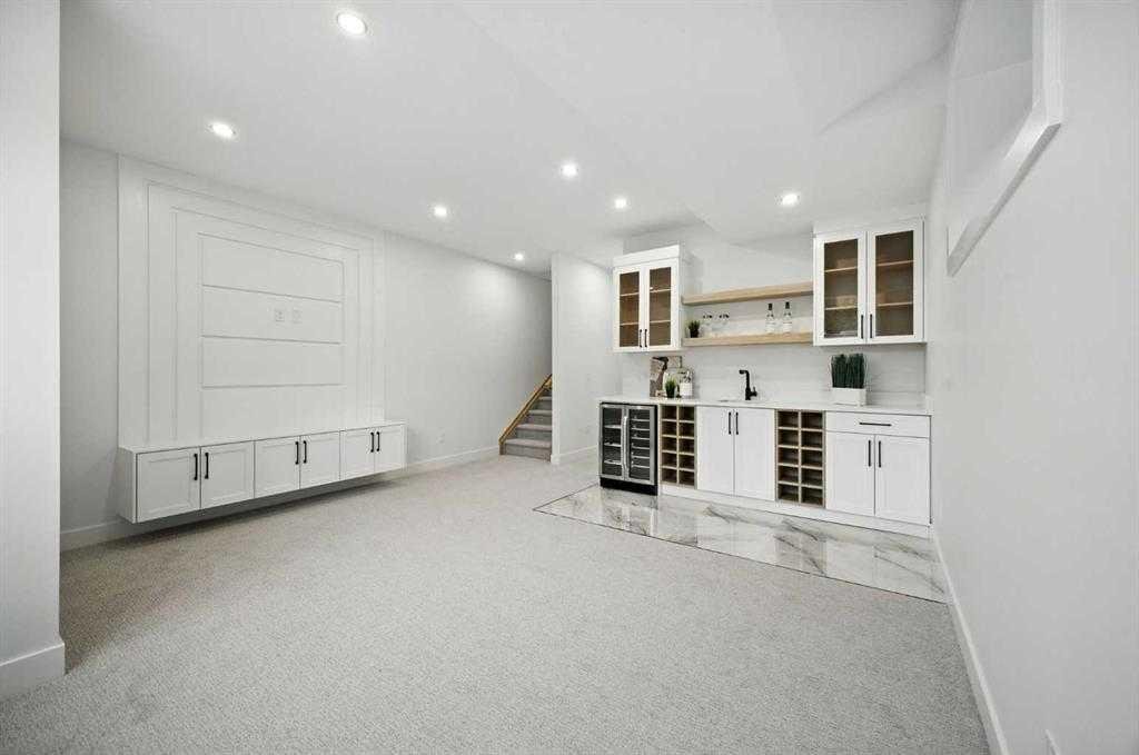 Set on a prime corner lot in one of Calgary’s most established inner-city communities, this home delivers striking design, exceptional craftsmanship, and everyday livability in Mount Pleasant. Created by Tricor Design Group, this newly constructed home offers a refined yet comfortable lifestyle, blending clean architectural lines with carefully curated finishes. Positioned directly across from a school and framed by professional landscaping, the setting offers both privacy and connection, with Confederation Park, the Mount Pleasant Sportsplex, local playgrounds, and downtown just moments away. Inside, the main floor unfolds into a bright, contemporary living space designed for both relaxed living and effortless entertaining. Large windows invite natural light throughout, highlighting the rich engineered hardwood flooring and stylish gas fireplace with custom built-ins that anchor the living area. The seamless open layout creates a natural flow between the kitchen, dining, and living spaces, offering an ideal backdrop for gatherings of any size. The kitchen is thoughtfully designed with a focus on clean aesthetics and everyday function. Quartz countertops, a dramatic waterfall island, and premium integrated appliances including an oversized refrigerator create a polished and highly functional workspace. Custom pantry storage enhances organization while maintaining a streamlined look. Expansive sliding doors extend the living space outdoors to a private backyard featuring a concrete patio, green space, and access to the double detached garage – perfect for hosting, relaxing, or enjoying warm summer evenings. Upstairs, the primary retreat provides a calming and well-appointed escape. A sleek electric fireplace adds warmth and ambiance, while the custom walk-in closet offers generous storage. The spa-inspired ensuite elevates daily routines with heated floors, a steam shower, and a freestanding soaker tub designed for total relaxation. Two additional well-sized bedrooms, a full bathroom, and an upper-level laundry room complete this floor, offering practical comfort for family living. The fully finished lower level expands the home’s versatility with a spacious recreation area featuring a modern wet bar and wine fridge, ideal for entertaining or unwinding. A dedicated home gym, fourth bedroom, and full bathroom provide flexible space for guests, work, or wellness. Thoughtfully designed from top to bottom, this home presents a seamless blend of modern style, comfort, and functionality in a sought-after inner-city location, and offers a rare opportunity to experience elevated urban living in a home where design and lifestyle come together effortlessly.