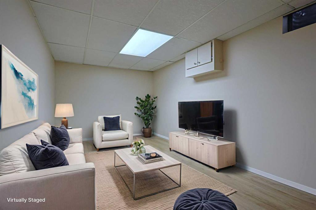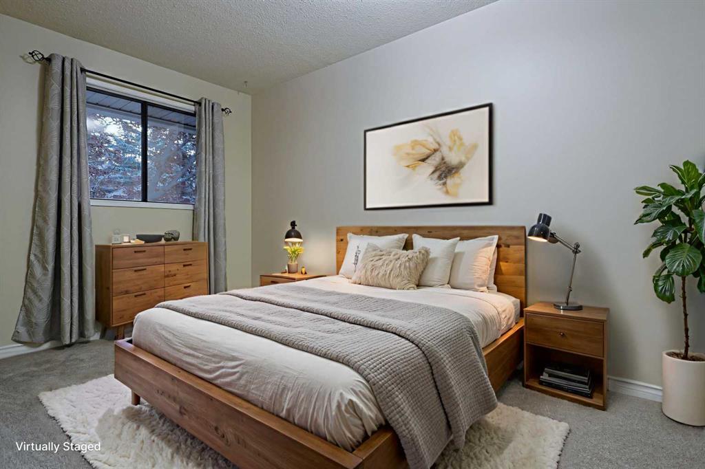 The perfect home for the first-time homeowner or investment is this beautifully updated townhome in the popular RANCHLAND MEADOWS project in the Northwest Calgary community of Ranchlands. Available for quick possession, this fully finished 3 bedroom two storey has brand new carpets & vinyl plank floors, galley kitchen with white appliances, 1.5 bathrooms & private backyard deck. Super floorplan featuring great-sized dining room, spacious living room with big Southwest-facing window & updated kitchen with loads of cabinet space & the appliances include Frigidaire fridge & brand new Amana stove. Upstairs there are 3 lovely bedrooms & updated full bathroom; all the bedrooms have excellent closet space & there is a large closet in hallway for your linens & towels. The lower level is fully finished with a rec room, office area, wet bar & laundry with Kenmore washer/dryer. The backyard deck & patio is a quiet space where you can enjoy the outdoors, shaded by mature trees. Hot water tank replaced in 2024. Some new interior paint. Your parking stall – with plug-in, is right out in front of your unit. Residents of RANCHLAND MEADOWS also have access to the rec centre with its meeting & common rooms. Monthly condo fees include not only grass cutting & snow removal, but also water & sewer. Ranchlands School & St. Rita School are both within walking distance. Prime location only a few short minutes to Crowfoot Centre, & the easy access to Crowchild Trail means you have at your fingertips…transit, regional recreational amenities, major retail centers, University of Calgary, hospitals & downtown.
