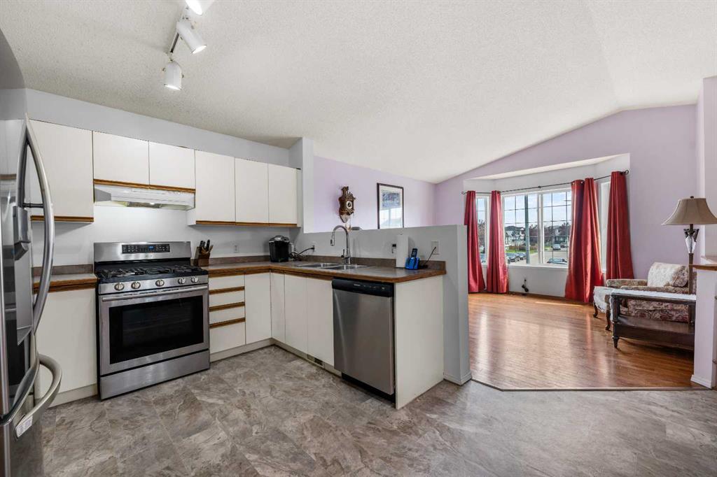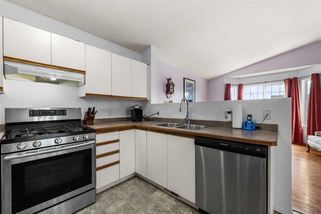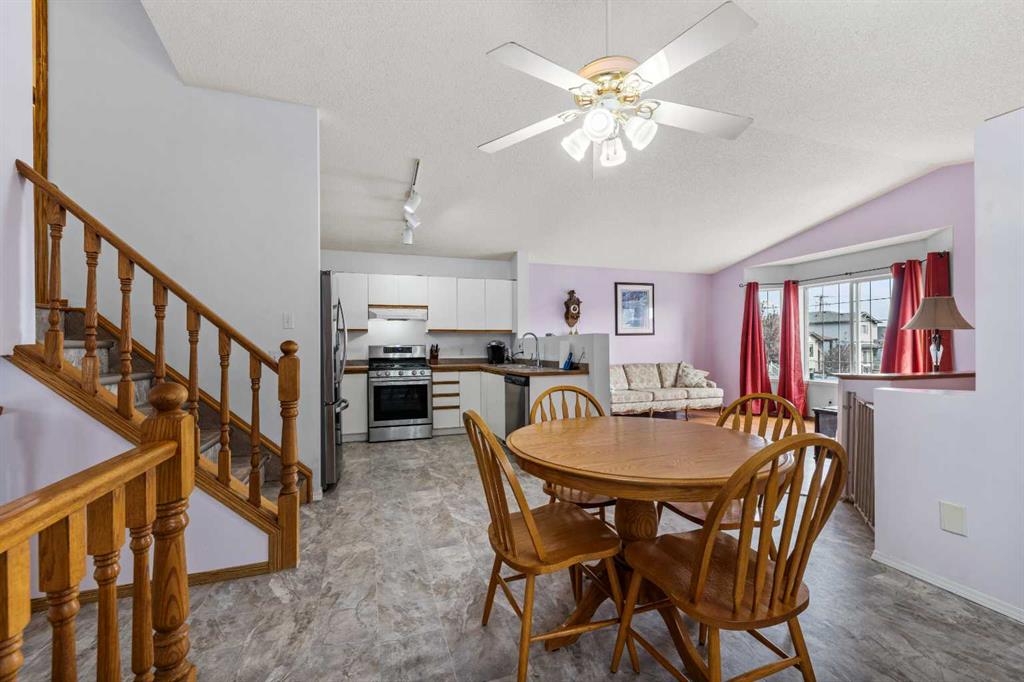 ** Brand New Hardie Board Siding ** 4 Level Split | 3 Bedrooms | 11 Foot Vaulted Ceilings | Open Floor Plan | Large Windows | Incredible Living Space | Stainless Steel Appliances | Gas Stove | Recessed Lighting | Ceiling Fans | Central Air Conditioning | Fresh Paint | New Carpet in 2 Bedrooms | New Linoleum | Basement Laundry | Fully Fenced Backyard | Double Detached Heated Garage | Rear Lane | Additional Street Parking | Close to All Amenities. Welcome to your gorgeous family home nestled in the heart of Martindale NE. The upgraded exterior has brand new hardie board siding which is hail, fire & storm resistant with a 30+ year life span. The upgrades don’t end here; inside you’ll find fresh paint, new linoleum in the kitchen and bathrooms, fresh carpet in 2 of the bedrooms, stainless steel appliances, a gas stove and central air conditioning! The front door opens to a foyer with closet storage and 3 steps up to the main level. The main level has an open floor plan with 11Ft vaulted ceilings and large windows that emphasize your space. The open concept living encourages a social atmosphere in this home when you are hosting your family dinners and holiday parties. The kitchen is outfitted with a gas stove, stainless steel appliances and ample cabinet storage. The dining room is centred with a ceiling fan great for airflow. Upstairs holds 3 great sized bedrooms and a 4pc bath. The primary bedroom has a walk-through closet with a cheater door to the 4pc bath. The 4pc bath has a tub/shower combo and single vanity with storage below. Downstairs, the walk-out lower level is built for comfort! The spacious family room has a corner gas adding warmth and comfort to this space. Head outside here to a patio perfect for BBQing. This also provides you access to the double detached garage. The lowest basement level holds a the laundry room, utility room and great storage space. The heated double detached garage with rear lane access provides you with parking for 2 vehicles year round. Additional street parking is also readily available at the front of the home. The location here can’t be beat; close to transit, parks, playgrounds and all amenities – this home has everything within minutes! Hurry and book your showing today!