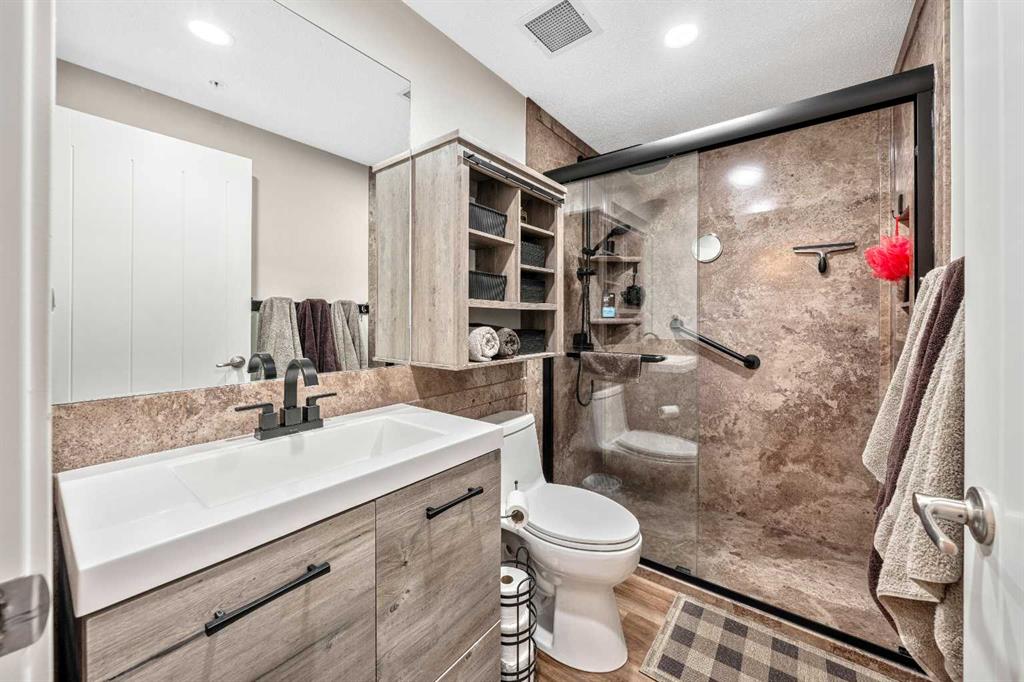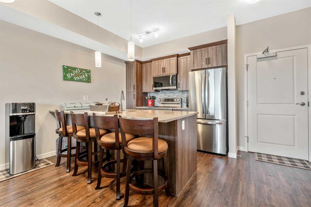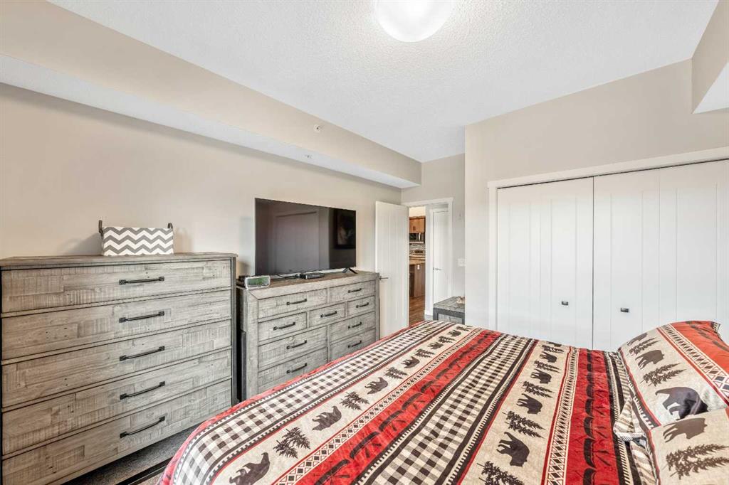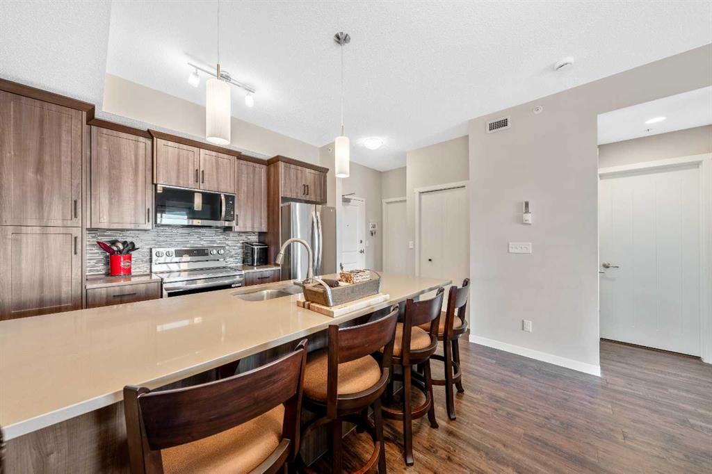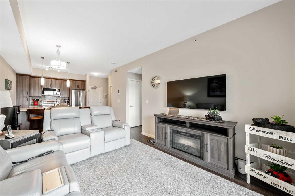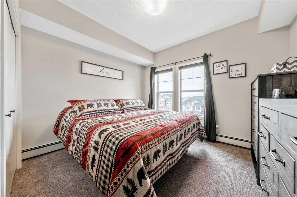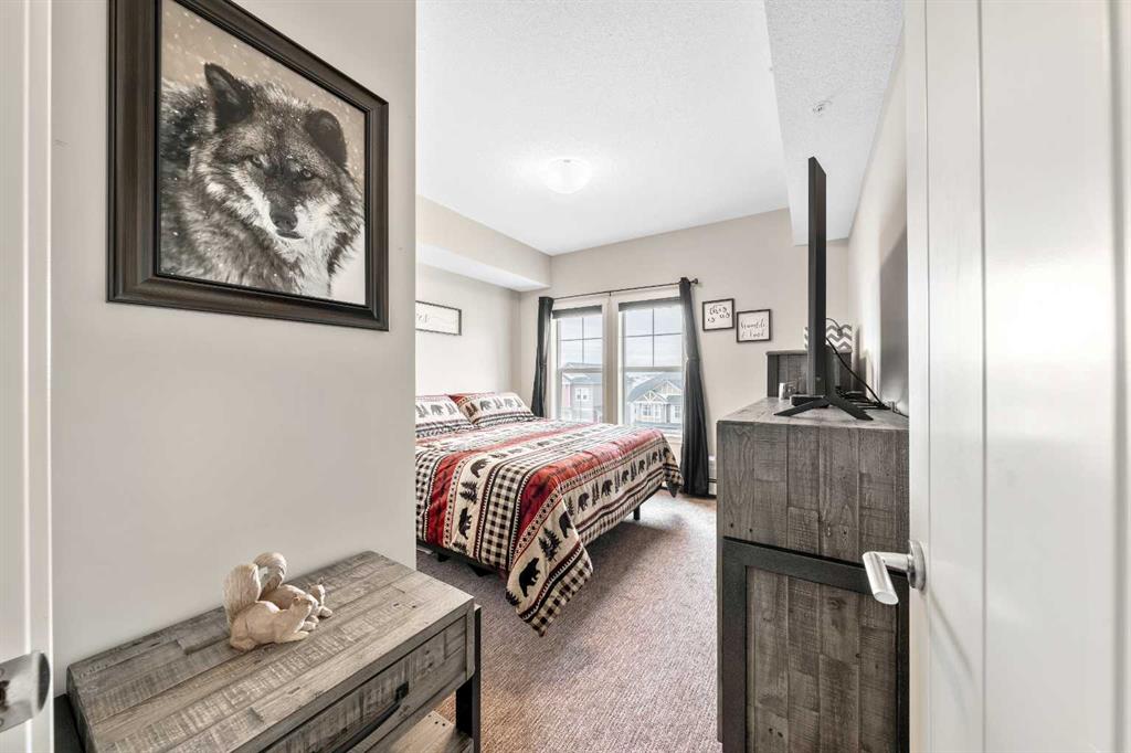 ***Do you ever DREAM of waking up to MILLION $ VIEWS OF THE ROCKY MOUNTAINS from your own bedroom EVERY MORNING?*** WELCOME HOME! This Beautifully RENOVATED & UPDATED PENTHOUSE level unit is all about LOCATION LOCATION LOCATION & WOW… THE VIEW!! Nestled in the PERFECT SPOT on the TOP FLOOR, this meticulously MAINTAINED home exudes style with elevated finishes and boasts nearly 650ft of thoughtfully designed living space, offering a bright, open concept floor plan with 9’ ceilings, Upgraded Soft-close Cabinetry, Rich Vinyl Plank flooring & bathed in natural light! Ideal for entertaining and everyday living, the stylish and modern layout flows seamlessly from the Gourmet CHEF’S Kitchen, complete with elegant QUARTZ countertops, ALL NEW APPLIANCES, an oversized peninsula with convenient eat-up breakfast bar, open to the inviting dining area and living room with Large WINDOWS and a front row seat to Cochrane’s natural scenic landscapes! A Private Master Retreat PLUS versatile Den/Office (or Guest area), chic and Beautifully RENOVATED Bathroom and In-Suite laundry complete the interior of this TURN-KEY GEM! Your private BALCONY, where the Rocky Mountains are your backdrop, offers the ideal spot to BBQ and entertain friends and family, or relax and connect with NATURE! Located in a well-managed, pet-friendly complex (with board approval), this unit also includes your own titled UNDERGROUND HEATED PARKING, DEDICATED STORAGE UNIT and more! Enjoy the comfort and convenience of numerous ON-SITE AMENITIES and everyday essentials, including medical, dental, pharmacy, retail AND MANY MORE right downstairs! Cochrane is known for its distinct Western heritage and friendly small town feel, offering a strong sense of community, nature focused living and outdoor adventure, balanced with modern conveniences with big city access, yet only a short scenic drive to the MOUNTAINS. Simply move in and enjoy everything that living at The Trading Post in Sunset Ridge has to offer!