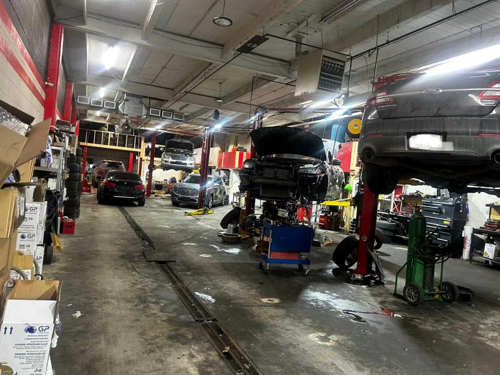 A fantastic and rare opportunity to on your own bay and run a business that is set up and ready to go. Overhead door, lots of parking, reception area, and upper mezzanine for storage, lunch room or private office. Current business name not included. 4 Hoists 2 Post 10000 LBS ( 2 Challenger And 2 Forward ),1 Hoist 2 Post 12000 LBS ( Forward ),1 Hoist 4 Post 14000 LBS ( Alignment ) ( Rotary ),Tire Changer Machine ( Corghi ),Tire Balancer ( Corghi ), Air Compressor ( DV ), Makeup Air Unit ( 5500 CFM ), 3 Air Hoses, Washing Machine & Dryer all included. All located in an ideal location.
