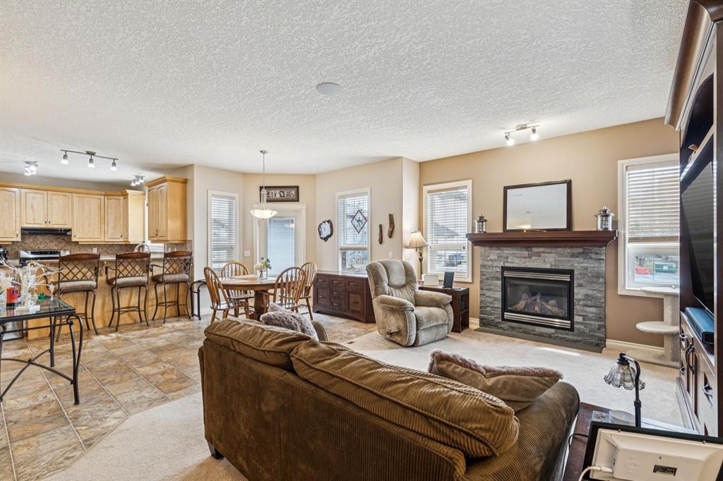This Beautiful custom-built Fully Finished Bungalow features over 2600 sq ft of living space. Located on a large no-maintenance corner lot. The upgrades include: 9′ ceilings, Built-in Entertainment shelving unit, increased attic insulation, roughed in plumbing for the basement, 60 oz carpet with 7.5lb underlay, gas line for BBQ on deck, 42″ kitchen cabinets, crown mouldings, Air Conditioning and that’s just the beginning. The main floor offers a spacious kitchen and family room with cozy gas fireplace, A 3pc bath and dining area with access to the deck and 2 bedrooms or one bedroom and Office. The Primary bedroom features a walk-in closet and full 5pc ensuite with large soaker tub and 2 sinks – lots of space to start your day. The lower level is Finished with two additional large bedrooms, a 3pc bath, baseboard heating and large windows. The double attached garage has running water and also a convenient man-door to the yard. This home exudes pride of ownership and offers neutral colors throughout. This corner lot also features rare R.V. parking with a shed and patio space. This home is close to schools, greenspace and all the shopping that matters.