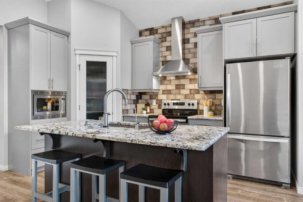 **OPEN HOUSE February 21, 1:00pm – 4:00pm** Welcome home! This beautifully designed bungalow in Livingston offers nearly 2,000 total sq.ft. of comfortable, easy living, with a layout that balances open gathering spaces and private retreats. The main floor welcomes you with an open floorplan that seamlessly connects the kitchen, dining, and living areas, creating a bright, inviting space that works just as well for quiet mornings as it does for hosting friends and family. The kitchen is both functional and welcoming, featuring generous counter space, a convenient pantry, and plenty of room to cook, prep, and gather. The adjacent dining room is perfectly positioned for everyday meals and special occasions alike, while main floor laundry adds an extra layer of convenience to your daily routine. The primary bedroom is located on the main level, offering a peaceful retreat complete with its own full ensuite with double vanities and a walk-through closet. The fully developed basement features 9ft. ceilings with two additional bedrooms, providing comfortable accommodations for family, guests, or a home office setup, along with another full bathroom for added ease and privacy. A large family room, creating the perfect space for movie nights, game days, or simply relaxing at the end of the day completes this level. Outside, the zero-maintenance backyard allows you to enjoy your outdoor space without the upkeep, while air conditioning ensures comfort throughout the warmer months. An oversized, insulated, and heated double detached garage completes the property, offering ample room for vehicles, storage, and hobbies. Livingston is a growing community with fantastic amenities, schools, shopping, and quick access to Stoney Trail. Book a showing with your favorite REALTOR® today!