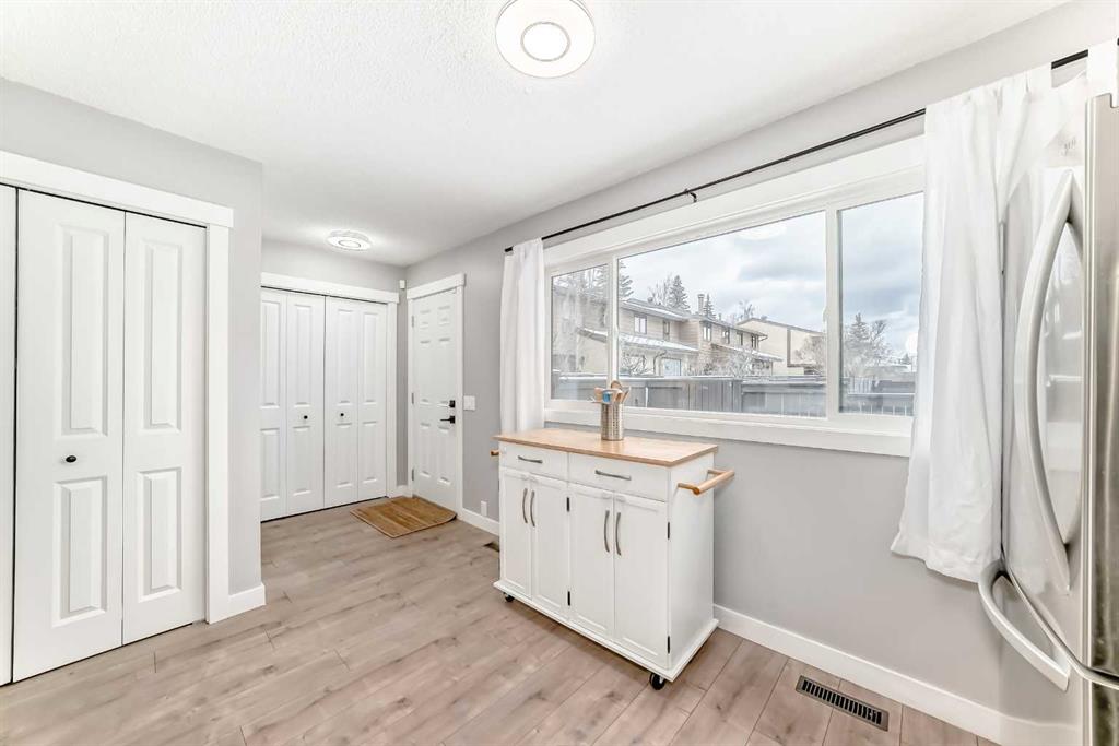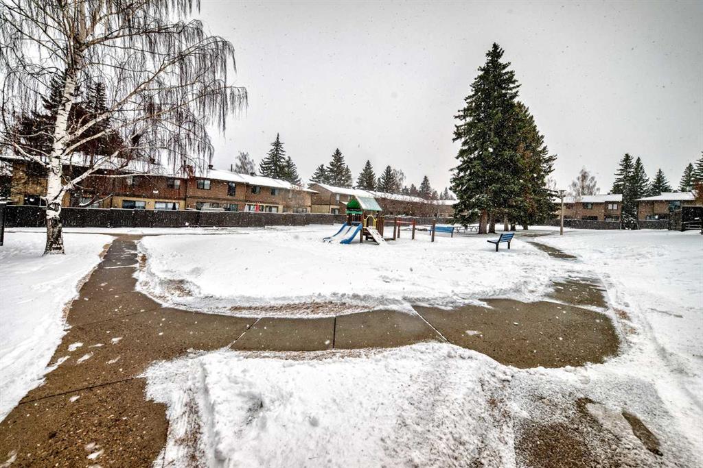 Perfectly situated in the popular and well managed Oakmoor townhomes, and in one of the best locations in the complex, this renovated end unit townhouse offers several standout features including a private driveway with parking for two vehicles right out front, a private fenced backyard that is perfect for entertaining, relaxing, or pets (with board approval), and an ideal location backing directly onto the large treed central courtyard with walking paths and a playground! Thoughtfully updated from top to bottom with improvements that include a high efficiency furnace, hot water tank, vinyl windows and more. The bright main floor, bathed in natural light from large south facing windows, features a spacious front living room, adjoining dining area, and a stylish kitchen with crisp white cabinetry, stainless steel appliances and a lovely view over the courtyard park. A convenient two piece bathroom completes the main level. Upstairs is host to three bedrooms including a generous primary featuring a walk-in closet, and a four piece main bathroom. The fully developed lower level provides additional living space, laundry (with a new LG Washtower machine!), plenty of storage and another two piece bathroom. Enjoy the convenience of parking for two vehicles on your private driveway located directly outside the front door, with ample visitor and street parking nearby. This well managed complex is close to schools, parks, shopping and transit, and offers easy access to Stoney Trail for a quick commute around the city and to the nearby Taza Park shopping district. Call your favorite Realtor to book your private showing today!