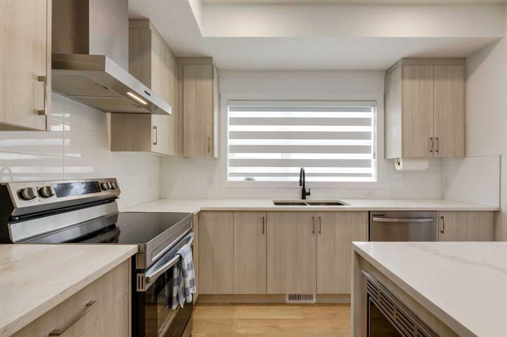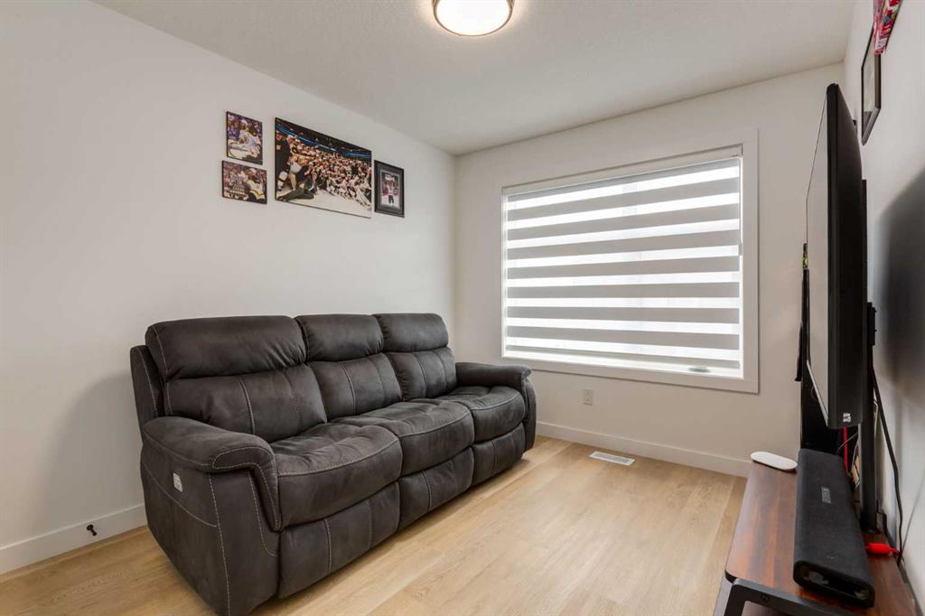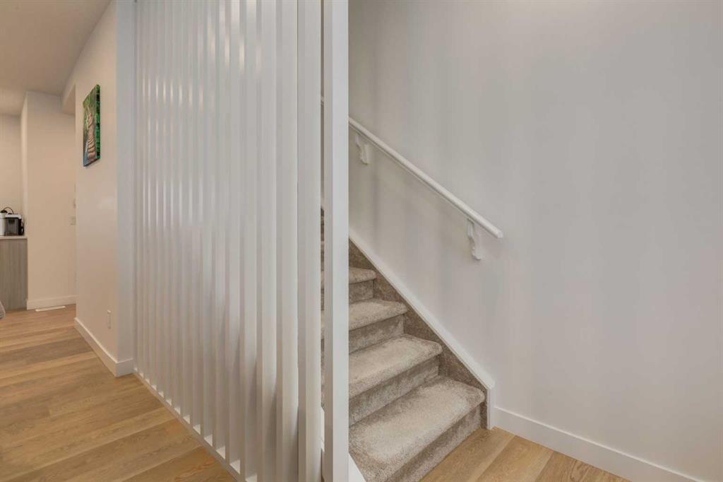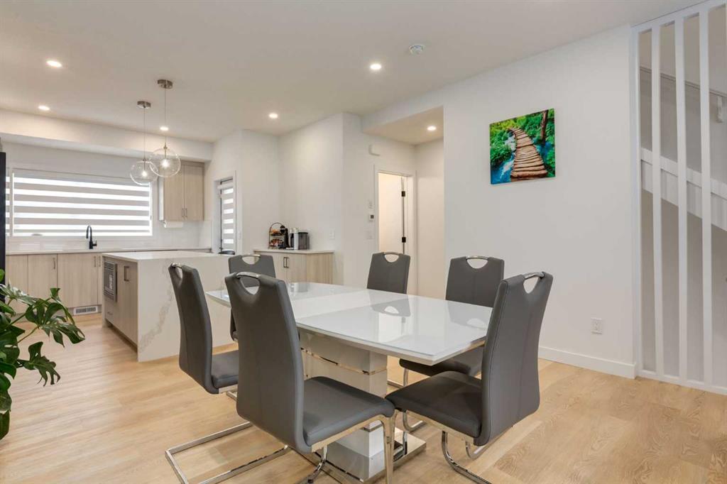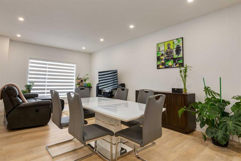 Nestled in the desirable lake community of Mahogany, this 2024 built, three storey townhouse by Mountain Pacific Homes offers a seamless blend of modern design, high end finishes and functional living. Featuring 3 bedrooms, 2.5 bathrooms and a double side by side attached garage with driveway; this home is designed for both comfort and convenience. From the moment you arrive, the Hardie board siding and engineered exterior trim provide standout curb appeal and lasting durability. Inside, you’re welcomed by a spacious foyer and a versatile flex room; ideal for a home office, gym, or additional lounge space along with direct access to the garage. The open concept main floor showcases 9’ ceilings, luxury vinyl plank flooring and large windows that fill the home with natural light. The chef inspired kitchen features quartz countertops, a waterfall island, full height cabinetry with a dedicated coffee bar, soft close doors and drawers and a full stainless steel appliance package, including a French door refrigerator and smooth top range. A full height ceramic tile backsplash, pendant lighting and pot lights throughout add a polished, modern finish. The kitchen flows seamlessly into the dining and living areas, perfect for entertaining. Upstairs, you’ll find laundry, a full four piece bathroom and three spacious bedrooms; one being the primary retreat with walk-in closet and four piece ensuite. Both upper level bathrooms continue the upscale feel with quartz countertops, tiled flooring, extra cabinetry and full height tile surrounds in the tub and shower. Additional highlights include automated blinds throughout and a private balcony with a BBQ gas line, ideal for relaxing or hosting guests. Located in the award winning lake community of Mahogany, you’ll enjoy close proximity to Mahogany Lake, along with schools, parks, pathways, shops, and trendy restaurants; offering a vibrant, walkable lifestyle.. Truly a must see, book your showing today!