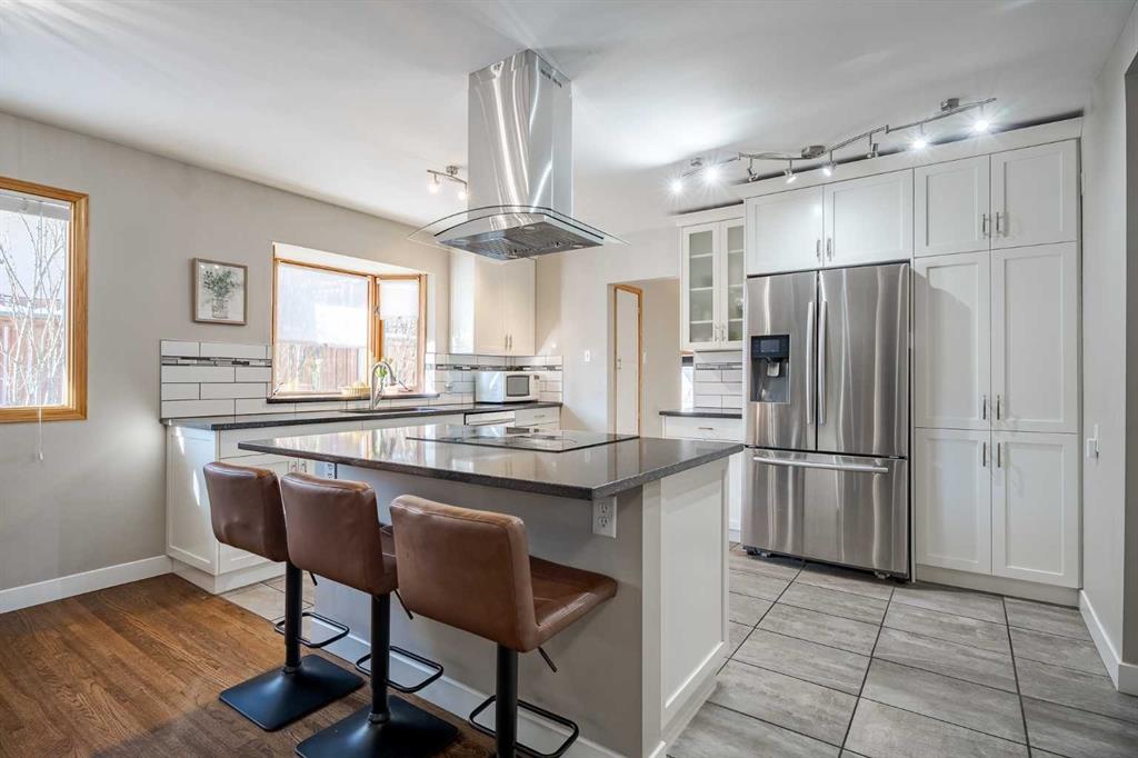 Welcome home—upgraded, bright, and incredibly versatile, 94 Brantford Crescent NW offers the Brentwood lifestyle with exceptional walkability to top schools, shopping, and transit, plus move-in-ready comfort with space to grow, work, and create. This is a location buyers consistently seek out: an established neighborhood with mature trees, everyday convenience, and a family-friendly feel. Inside, the main floor has been thoughtfully opened to create a bright, connected living space. The renovated kitchen anchors the home with granite countertops, a large island with breakfast bar, stainless steel appliances, and a bay window that fills the space with natural light. Beautiful tile and hardwood flooring run throughout the main level, creating warmth and continuity from the living room through to the dining area. The primary bedroom features a walk-in closet and private ensuite, complemented by two additional bedrooms and a full bathroom—an efficient layout ideal for downsizers seeking one-level living and families who want proximity to great schools. The fully developed basement expands the home’s versatility, offering two additional spacious bedrooms, a generous recreation room, an upgraded 3-piece bathroom, and a substantial storage/laundry area with built-in shelving to keep daily life organized. One of the standout features is the newer double detached garage, currently converted into a fully finished heated workshop/studio. Well-insulated and drywalled, it’s finished with luxury vinyl plank flooring, a skylight, patio doors to the private backyard, and its own electrical sub-panel—perfect as a home office, art studio, music room, fitness/yoga space, or workshop. (Conversion back to a double garage is straightforward if desired.) Major upgrades provide confidence: hot water tank (2025), furnace (2024), roof (2024), kitchen hood fan (2024), washer (2024), bathroom exhaust fans (2024), and electrical panel (2015). A rare combination of location, upgrades, and adaptable space in one of Calgary’s most established northwest communities—book your showing before this one is gone.