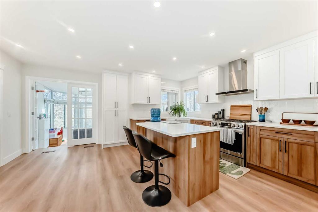 The bright, open-concept main floor is highlighted by new waterproof luxury vinyl flooring, recessed lighting, and a fully renovated kitchen that blends style and function. Featuring high-end appliances, a gas range, farmhouse sink, soft-close cabinetry, and modern finishes, this space is designed to impress. The sunny dining area flows effortlessly into the inviting living room with a cozy gas fireplace, while the stunning four-season sunroom, surrounded by windows and skylights, this home creates a versatile space perfect for relaxing, entertaining, or working from home year-round.
