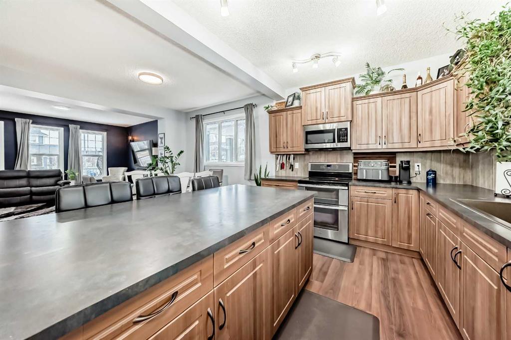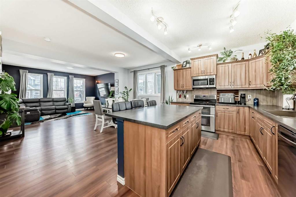 ** Open House: Saturday, March 7th 12-2pm ** Picture-perfect living awaits in the heart of Riversong! Start your mornings with a coffee on the charming front porch as the sun rises, and end them hosting sunset BBQs on the massive deck in your private, west-facing backyard. The main floor welcomes you with a bright entryway and oversized windows that flood the space with natural light. The heart of the home is the kitchen, featuring an overhanging island perfect for morning huddles and a seamless flow into the bright living area. A convenient 2pc bath completes this level.