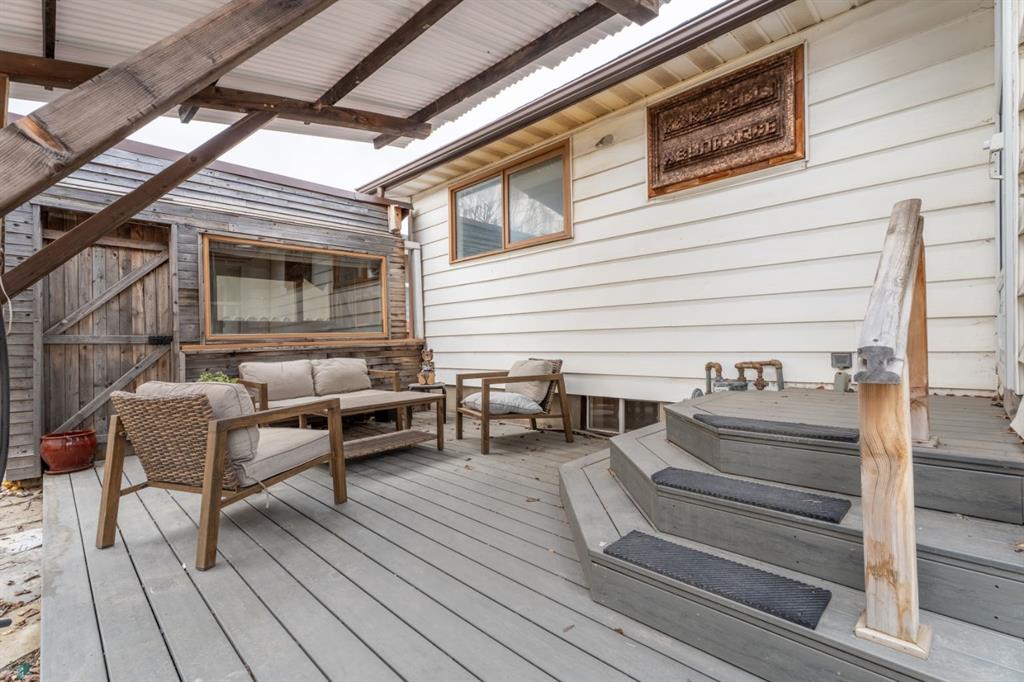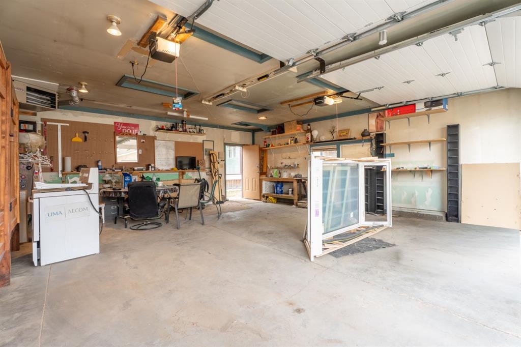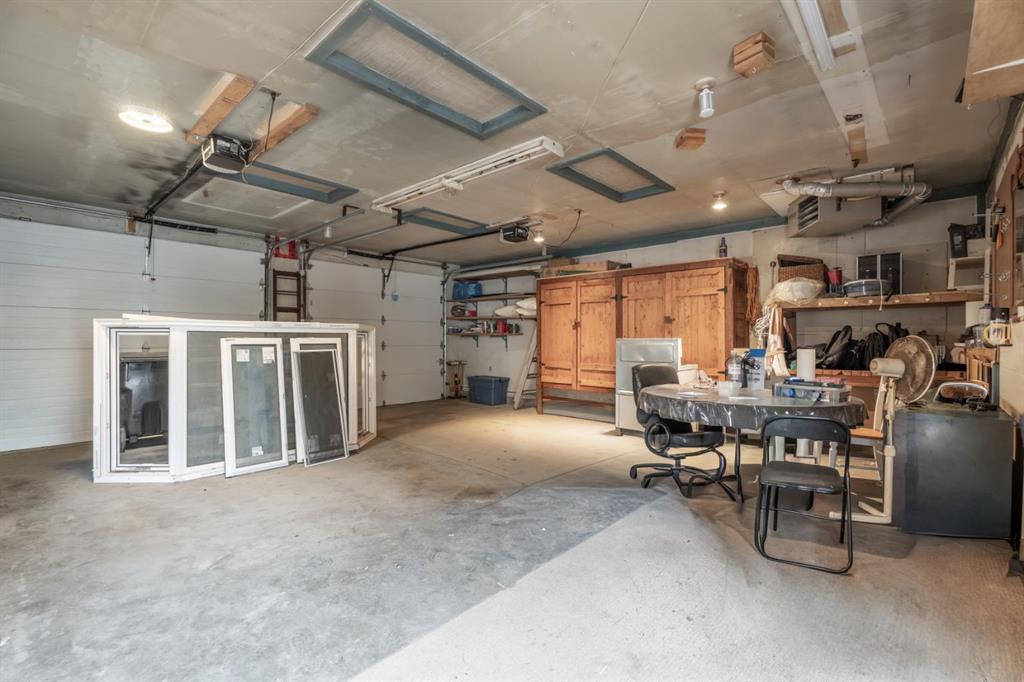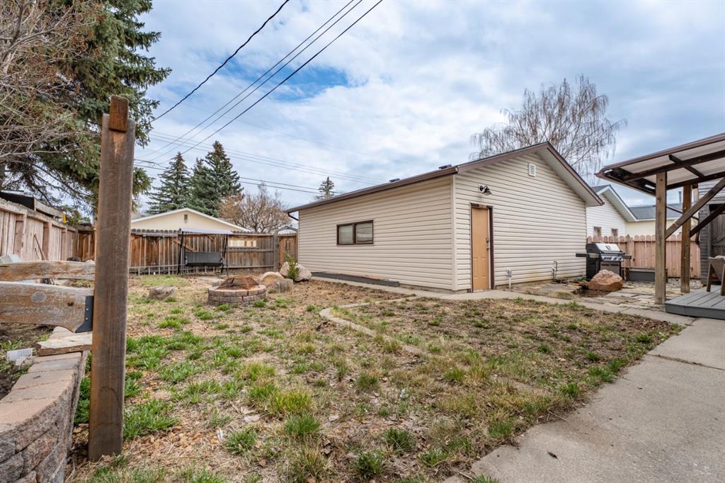Step outside and you’ll find a backyard that truly sets this property apart. Enjoy a covered patio for year-round use, a beautiful slate water feature that adds a touch of tranquility, and a newer composite deck built for low-maintenance living. The space is complete with a double detached garage, alley access, an additional parking area ideal for an RV, and a convenient storage shed.