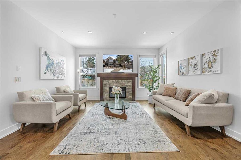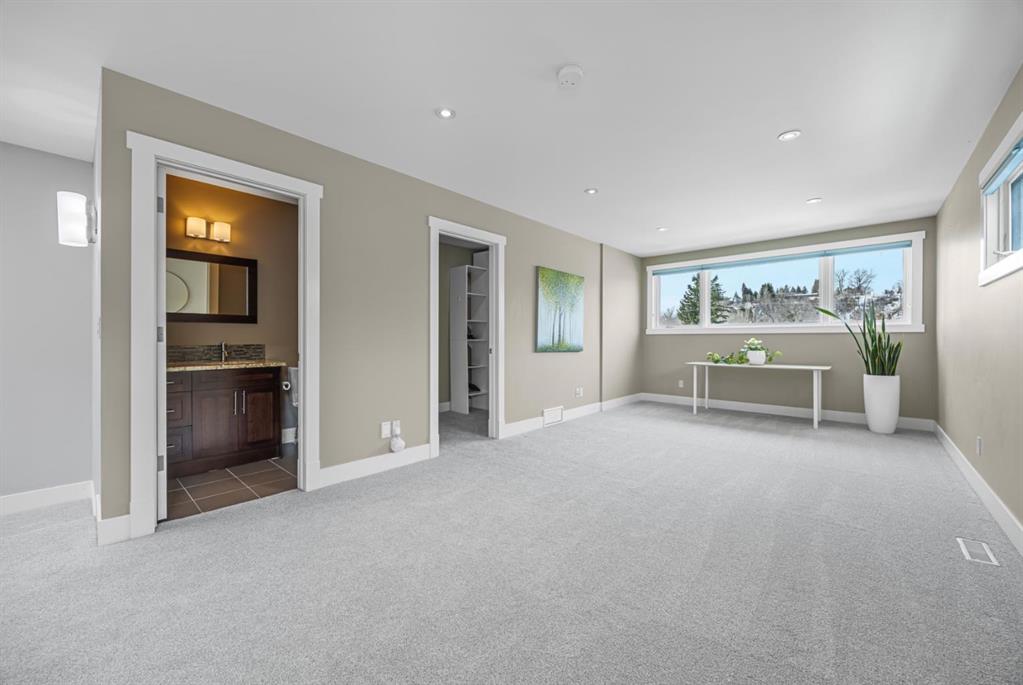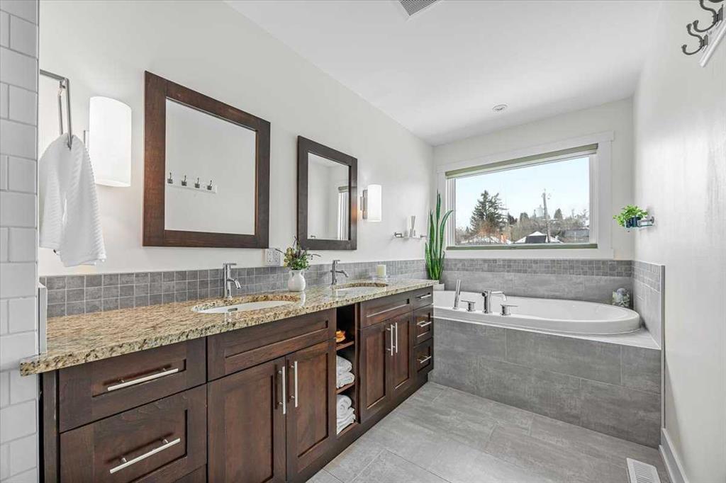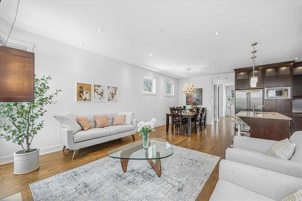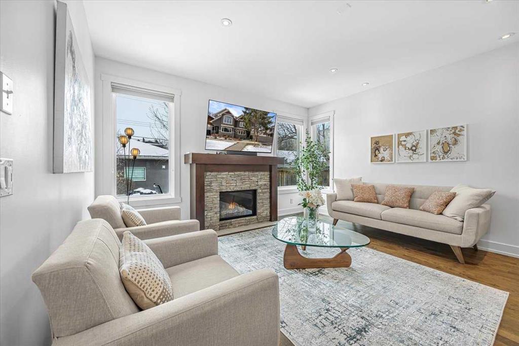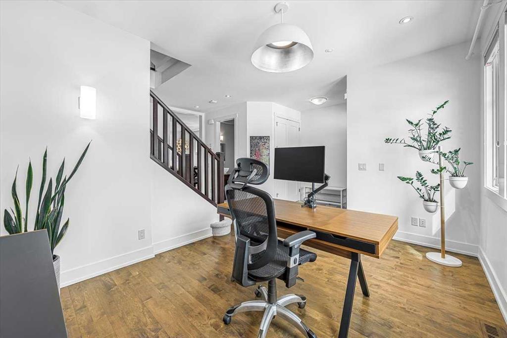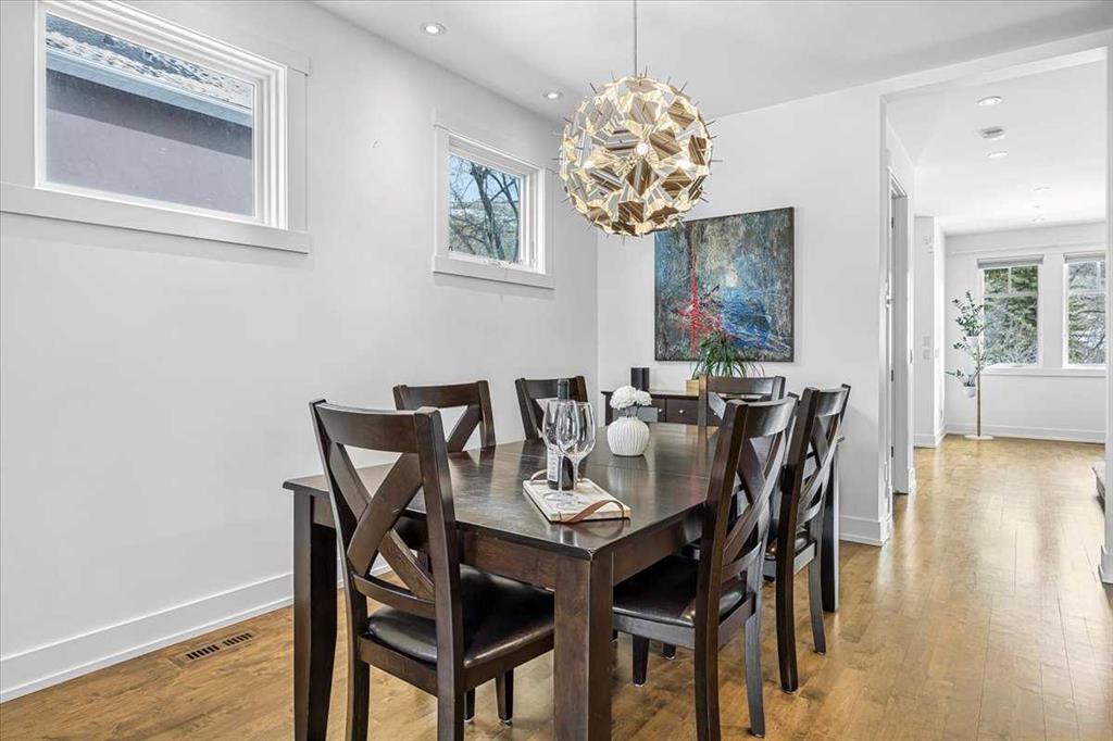 Welcome to elevated living in one of Calgary’s most coveted inner-city neighbourhoods – Sunnyside. This stunning thoughtfully designed three storey semi-detached executive home delivers luxury finishes and an unbeatable lifestyle in the heart of Calgary. Featuring 4 bedrooms and 5 bathrooms, on a quiet street – nestled near McHugh’s Bluff. Over 2500 sq ft above ground on three levels and a fully finished basement. The main level has an open floor plan, kitchen, dining and living area adjacent to each other – ideal for family life or entertaining. The kitchen includes quartz counter tops, full height cabinetry, 6 burner gas range, a breakfast bar and plenty of space to prepare meals and store items. The spacious back door mudroom has built in cabinetry to store your seasonal items & clothing – offering easy entry & exit.. Ascend to the second level to a spacious master bedroom with spa-inspired en-suite complete with dual vanities, heated floors, steam shower, jet soaker tub and a water closet. Rounding out the second level is 2 more bedrooms, a 4 pc bath and separate laundry room. The third level has a generous flex space, 2 pc bathroom and storage closet – perfect for home office, play/hobby room or guest suite. Descend to the lower level where you can unwind in the home gym, entertain at the sophisticated wet bar or relax while watching movies or having a game night. Step outside to the deck and enjoy a meal you’ve prepared with your gas BBQ while taking in the resort like tranquil pond feature & professionally landscaped grounds. Or cozy up to the firepit area for evening gatherings. A poured aggregate walkway leads from front door all the way to the double garage and patio area. The home is situated directly across the street from a park – offering a rare view of green space and has a walking/bike path connecting you to Calgary’s pathway network with ease. A 15 minute walk takes you to downtown Calgary or to Kensington where if offers – boutique shops, acclaimed restaurants and a vibrant community life. This home is built for modern executives & families alike. View this gorgeous home today – where luxury meets nature and urban convenience – perfectly balanced!