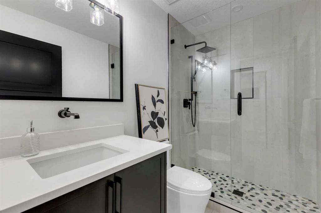 Extensively renovated home | 24×24 Garage | West backyard. Discover this stunning newly renovated bungalow in the heart of Acadia, offering over 2,300 sq. ft. of beautifully designed living space. With 4 spacious bedrooms and 3 full bathrooms, this home blends modern comfort with thoughtful functionality. The main floor features a bright living area accented by an elegant electric fireplace flanked by custom built-ins, while the chef-inspired kitchen impresses with a massive island, gas cooktop, and a stylish coffee bar with wine cooler. A convenient side entrance leads to the backyard through a well-appointed mudroom that includes its own laundry room. Upstairs, you’ll find two generous bedrooms, including a serene primary suite with a luxurious ensuite and walk-in closet with built-ins, plus another bedroom with its own built-in closet and a full bathroom completing the level. The fully finished basement is an entertainer’s dream, showcasing a spacious recreation area with a wet bar and another electric fireplace, along with two additional bedrooms and roughed-in plumbing for a second laundry. Outside, enjoy a sunny west-facing backyard and the convenience of a double car garage, making this exceptional home truly move-in ready.