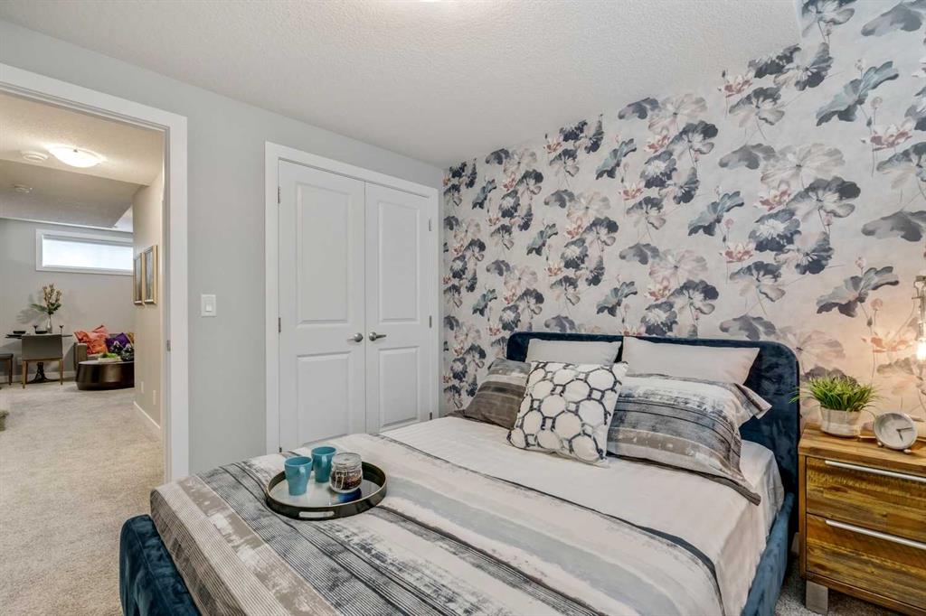 This beautifully designed show home features a double detached garage and welcoming front porch, complemented by 9’ knockdown ceilings throughout the main level. The front lifestyle room offers a spacious area to relax, while a dual-door closet provides ample storage. The center dining area flows effortlessly into the rear kitchen, which boasts stainless steel appliances including a slide-in stove, over-the-range microwave, French door refrigerator, and dishwasher, all enhanced by soft-close cabinetry, quartz countertops, and a stylish tiled backsplash with added upper soffit filler. A dual-door pantry and rear entry with a coat closet add convenience, along with a 2-piece bath on the main floor. Upstairs, plush carpeting covers the hall and two front bedrooms, while the rear primary suite features vinyl plank flooring in the 4-piece bath, complete with a quartz storage vanity, tub surround with decorative tile accents, and direct access to a spacious walk-in closet. The upper laundry area includes a washer, dryer, and additional upper cabinets for storage. A second vinyl plank 4-piece bath with quartz vanity and tiled tub surround serves the upper level, alongside an upper linen closet. The finished legal basement suite with a separate side entry offers comfortable living with carpeted floors and knockdown ceilings. It includes a common area leading to the utility room, a stacked laundry closet with full-size washer and dryer, and a vinyl plank 3-piece bath featuring a separate shower, quartz storage vanity, and tile accents. The suite’s kitchen is equipped with vinyl flooring, upper and lower cabinets, stainless steel fridge, smooth-top stove, dishwasher, quartz counters, tiled backsplash, and over-the-range microwave. A rear bedroom with closet completes this self-contained living space. Not just a home but a smart investment with a legal suite and double detached garage!