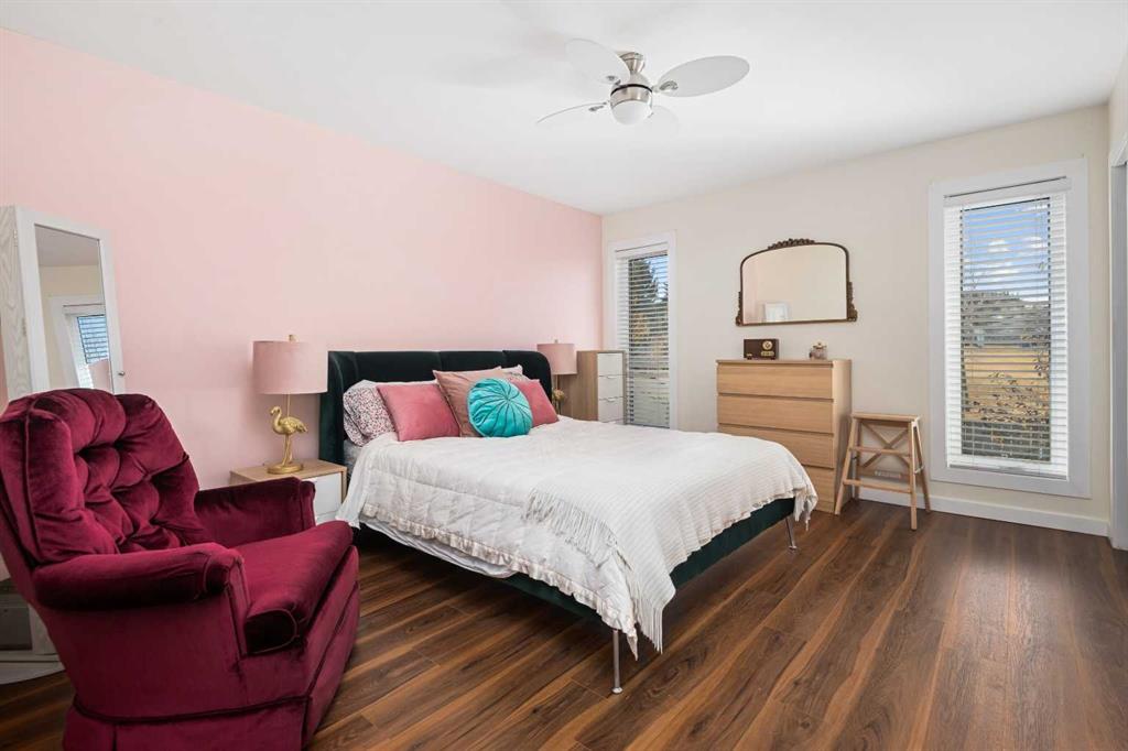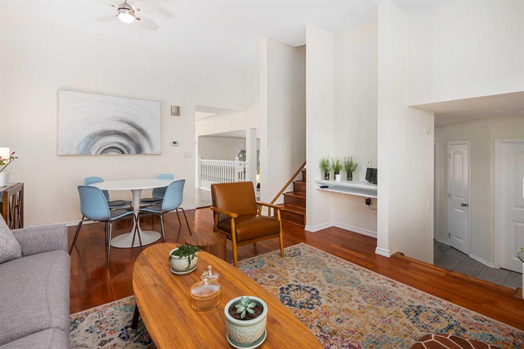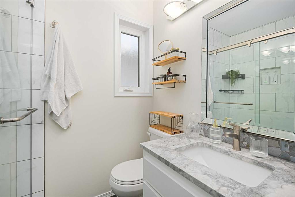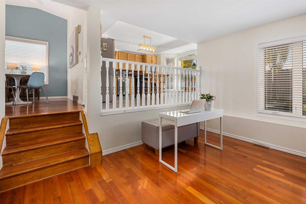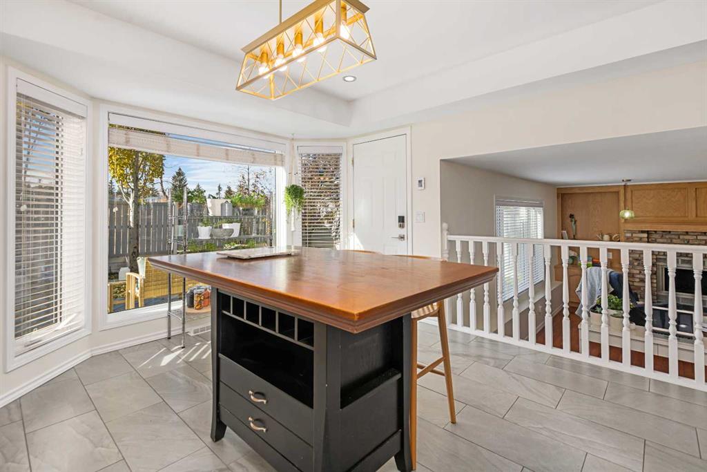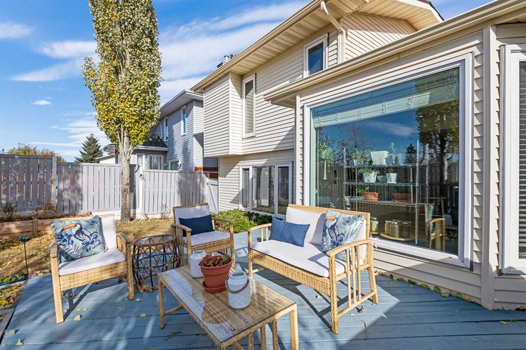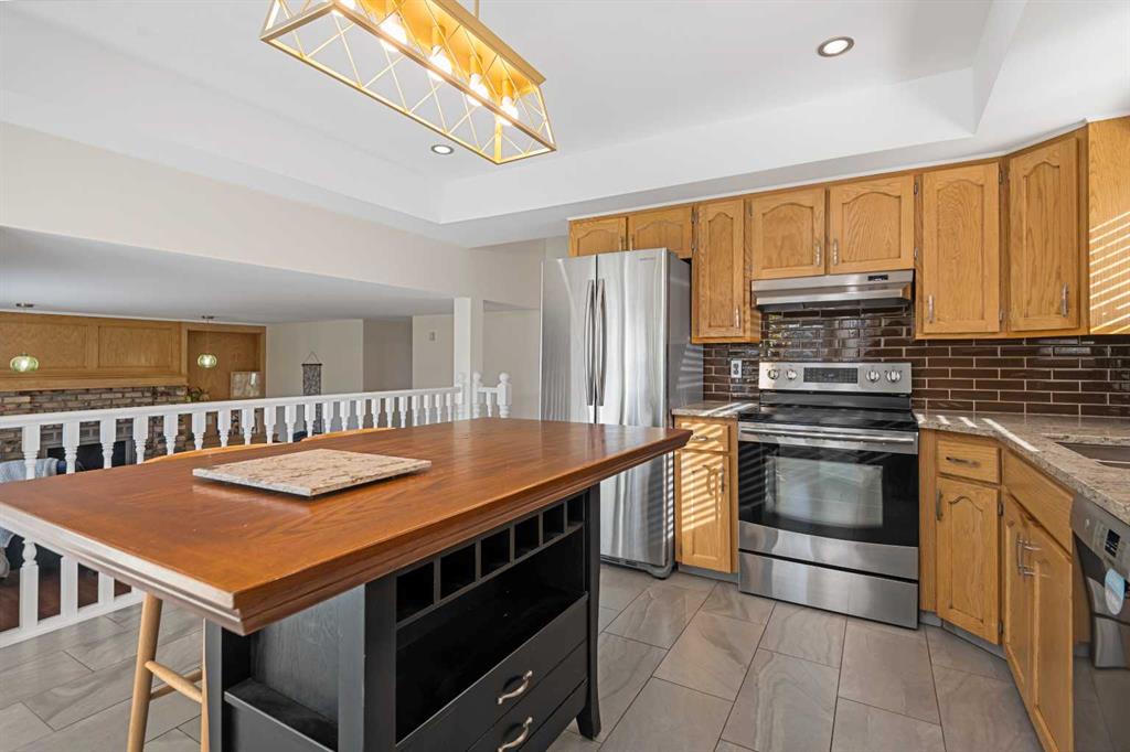 OPEN HOUSE SATURDAY NOVEMBER 1 FROM 1 TO 3 PM. Situated in the NW community of MacEwan, this 4 level split backs onto green space and offers comfort, style, and convenience. Bright, open-concept living and dining room are highlighted by vaulted ceilings and rich hardwood floors which give a spacious and inviting feel. Clean, modern kitchen features oak cabinets, granite counters, and large windows for natural light. The kitchen flows seamlessly into the family room. This space is perfect for entertaining or everyday living. The family room features a cozy wood-burning fireplace with brick accents, built-in shelving, and views to the West backyard. The main floor bedroom offers great flexibility for guests or extended family. This flex space also works as an office or library. A convenient newly renovated 3 piece bath completes this level. Upper floor primary suite is a large space with walk-in closet, new 3 piece bath including walk in shower and sightlines to the green space. Two more bedrooms and renovated 4-piece bath complete this floor. New vinyl plank flooring has been installed on this level. Freshly painted, the basement awaits your design ideas. An insulated, drywalled double attached garage will keep your vehicles warm this winter and offers more storage. The west-facing backyard is a tranquil space with mature trees, no rear neighbors and green space beyond. This home has been well maintained and is freshly painted. There are new light fixtures, newer furnace, and hot water tank. For your comfort, insulation has been added to the attic, and vented fans added to the bathrooms. Of course, there is A/C for the warmer months. MacEwan Park offers pickleball and tennis courts, playing fields and a playground right outside your door! Nose Hill Park is a short drive or bike ride away. This home is an easy commute to downtown, U of C, and SAIT.