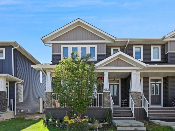 FORMER SHOWHOME | GEMSTONE LIGHTS | TRIPLE PANE WINDOWS | OVERSIZED GARAGE | BUILT IN SPEAKERS | CENTRAL A/C. Welcome to this exceptional former showhome in the vibrant community of BELMONT, where THOUGHTFUL DESIGN meets EVERYDAY LUXURY. From the moment you arrive, this home stands out with its CUSTOM GEMSTONE LIGHTING and OVERSIZED GARAGE, perfect for larger vehicles or extra storage. Step inside to discover a BRIGHT OPEN CONCEPT MAIN FLOOR with WIDE PLANK VINYL FLOORING, HIGH 9 FT CEILINGS, an inviting LIVING AREA WITH GAS FIREPLACE, and a CHEF’S KITCHEN equipped with QUARTZ COUNTERTOPS, STAINLESS STEEL APPLIANCES, a WALK IN PANTRY, and sleek CABINETRY. A SKYLIGHT ABOVE floods the space with natural light, enhancing the airy feel. Upstairs, you will find a SPACIOUS BONUS ROOM WITH HIGH CEILINGS, a serene PRIMARY SUITE WITH SPA INSPIRED 5 PIECE ENSUITE and WALK IN CLOSET, plus TWO MORE GENEROUS BEDROOMS and a conveniently located LAUNDRY ROOM. TRIPLE PANE WINDOWS throughout provide ENERGY EFFICIENCY and a WHISPER QUIET INTERIOR. The entire home is wired for sound with IN CEILING SPEAKERS and a HIGH END AMPLIFIER SYSTEM, ideal for entertaining or enjoying your favourite playlists in style. Stay cool in summer with CENTRAL AIR CONDITIONING and enjoy the MODERN ELEGANCE of every corner in this professionally designed space. The BASEMENT offers a blank canvas, ready for your custom vision with LARGE WINDOWS and PLUMBING ROUGH INS. This is the perfect blend of SHOWHOME QUALITY FINISHES and REAL WORLD FUNCTIONALITY in one of Calgary’s most desirable communities.