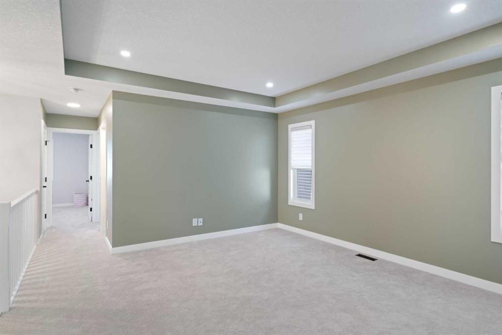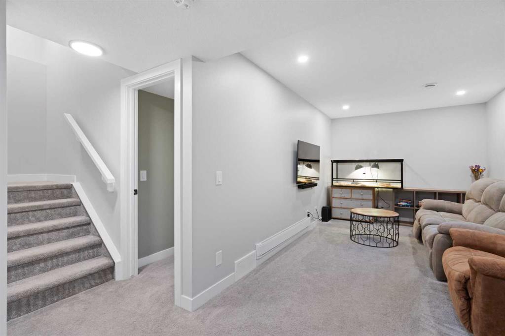 Welcome to this beautifully finished and thoughtfully upgraded Calbridge-built home backing onto a pathway and offering a blend of style, comfort, and functional living across all three levels. From the triple-pane windows to the fully developed sunshine basement, every detail has been selected to enhance everyday life. The main floor features a spacious front entry, 9 ft ceilings, fresh paint, a convenient 2pc bath, and an open-concept layout that is ideal for both family living and entertaining. The kitchen stands out with full-height dark grey/blue cabinetry, quartz countertops, herringbone tile backsplash, a large island, and KitchenAid dark stainless steel appliances including a gas range, and built-in microwave. The walk-in pantry provides exceptional storage with tons of shelving. The bright living room offers a gas fireplace with conduit to keep media wiring hidden and large windows that capture serene views of the backyard and pathway. The dining area comfortably fits a full-size table and leads to the back deck with BBQ gas line, stairs down to an exposed concrete patio, fresh mulch landscaping, storage under the deck, and a built-in cast iron firepit, perfect for relaxing or hosting. Upstairs, brand new carpet leads to a central bonus room with tray ceiling and pot lights. The primary suite feels like a retreat with vaulted ceilings, gimbal pot lights, a feature wall, a large walk-in closet, and a 5pc ensuite including comfort-height double vanity with quartz counters, a soaker tub, and a tiled shower with niche. Two secondary bedrooms (one with a walk-in closet), a full 4pc bathroom with quartz countertops, and an upper laundry room with folding shelf complete this level. The fully finished sunshine basement is warm and inviting thanks to double-insulated walls and a dual-zone furnace, and includes a spacious recreation room, large bedroom with walk-in closet, 4pc bath with quartz counters, storage space, sump pump, and rough-in for radon. The double attached garage is plumbed and ready for utility use, making it ideal for future workshop needs. This is a move-in ready home where thoughtful upgrades, practical design, and location come together, set in a quiet, family-friendly area with direct pathway access right out your back door.