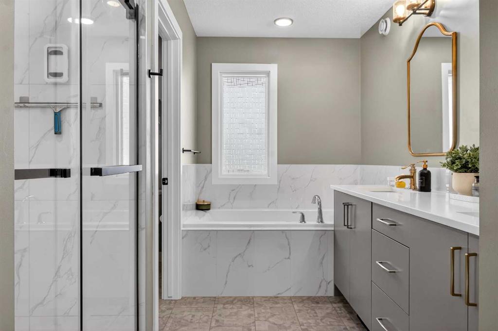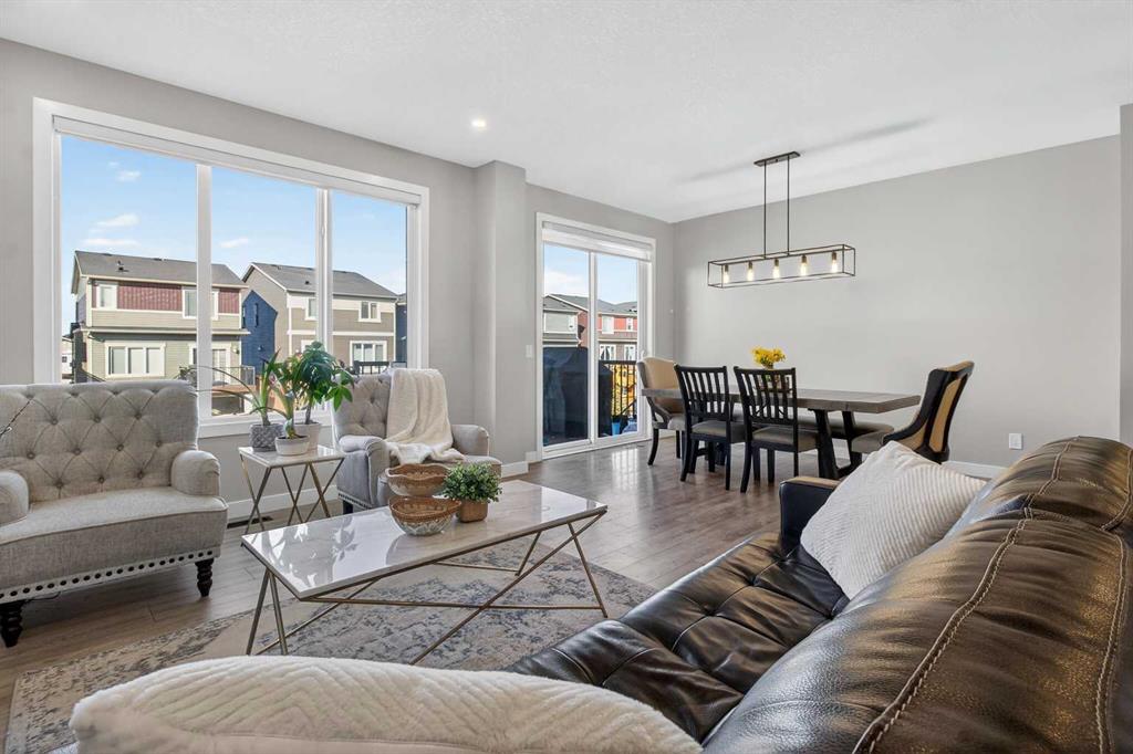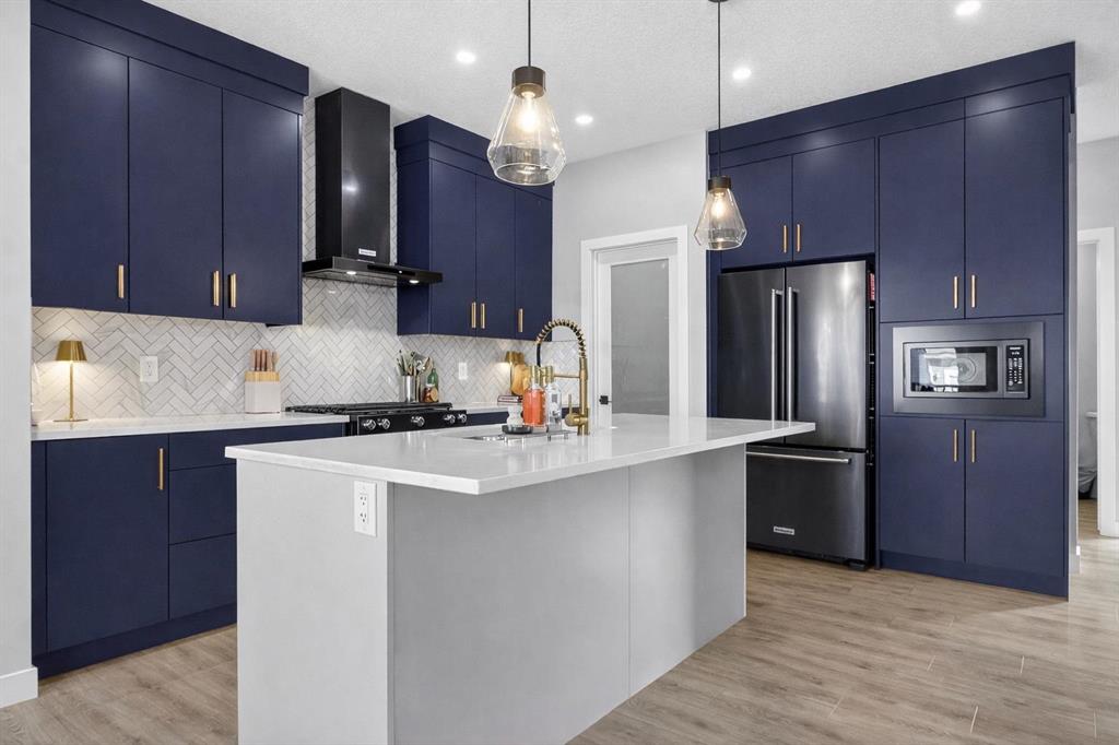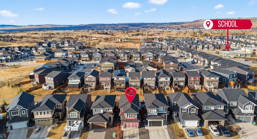 Welcome to this stunning family home in Cochrane, perfectly designed for growing families who love to entertain and create lasting memories. This huge open-concept residence features a gourmet kitchen with dark grey stainless steel appliances, a 5-burner gas stove with built-in microwave, a 4-seater kitchen island, soft-closing cabinets, and a large walk-in pantry. The adjacent dining room opens onto a deck for seamless indoor-outdoor living, while the spacious family room with fireplace is ideal for cozy gatherings. Upstairs you will find two large secondary bedrooms, a grand bonus room, a convenient laundry room, and a luxurious step-down grand master suite with vaulted ceilings, walk-in closet, and a 5-piece ensuite featuring double vanities, a soaker tub, and rain shower. The fully finished basement offers a large living space, office, a 4th bedroom and 4th bathroom, ample storage, a sump pump, and an ARV system for excellent air quality. The backyard is an entertainment paradise with a large deck, gas BBQ, built-in firepit, water fountain, custom imported stone and glowing concrete, hand-picked family trees, and offers minimal yardwork, perfect for family fun and effortless hosting. This thoughtfully crafted home combines quality, comfort, and lifestyle in one of Cochrane’s most desirable communities. Schedule your private showing today!