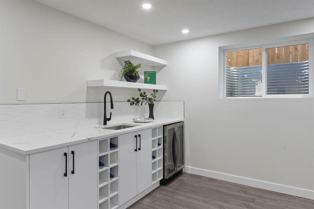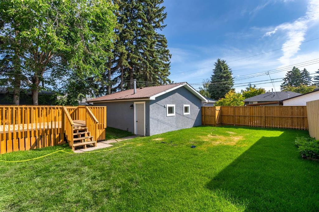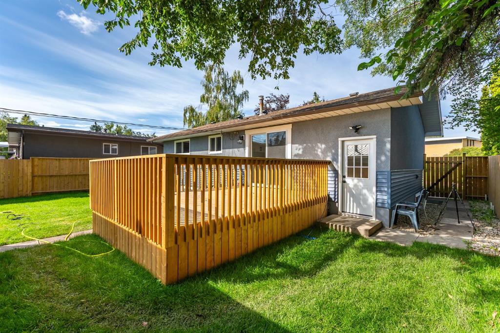 Wow! This is the home you have been waiting for! This fantastic family home on a huge lot in the coveted community of Acadia is located on a quiet street across from a school and features 5 bedrooms, 2 full bathrooms, over 1,832 sq ft of total living space, plus a large, splendid sunny backyard! Upon entry, you are greeted with an exceptionally bright and open contemporary floor plan, featuring an open foyer, a large living area with soothing, rich luxury vinyl plank flooring, and a wall of windows spanning the back of the home, providing a fantastic feeling of space and tranquility. The chef’s kitchen offers quartz counters, stainless steel appliances, custom white full-height cabinetry, custom backsplash with lighting, and loads of gorgeous counter and cupboard space next to the formal/casual dining room that is poised to host many dinner nights with friends and family. The lovely and private rear yard, which is just the right space for a yard and garden, has a large deck featuring seating to enjoy a quiet night or BBQ perfect for hosting guests. There is also a large oversized double detached garage for convenient parking. Back inside is a spectacular master retreat with a large closet with organizers, a luxurious bathroom with a comfort-height vanity, beautiful designer tile, upgraded fixtures, and great storage! Down the hall is a large second bedroom, den/bedroom, and storage. The bright lower level offers even more versatility and additional space, including two large bedrooms or office spaces with large closets, BIG raised windows providing exceptional light, a large rec room perfect for movie nights or a games room, a gym area, full bar, a 3-piece bathroom, a large storage room, and mechanical systems with laundry room. As you take it all in, don’t forget to notice the upgraded high efficiency mechanical systems, updated windows, roof, exterior and insulation, beautiful landscaping, and the oversized garage with alley access. You will appreciate being on a quiet street just steps to a field and schools, playgrounds, shopping and it has quick, easy access to enjoy living in this beautiful inner SE community with the Acadia Recreation Complex, Alberta Tennis Center, numerous athletic parks, endless commercial space on Macleod Trail and the Acadia Shopping Center, and all levels of schools (including charter schools). Acadia also features easy access to downtown and major SE arteries for quick trips to the mountains. Call today to schedule your private viewing. A Perfect home! TRULY A MUST SEE!! Call today!