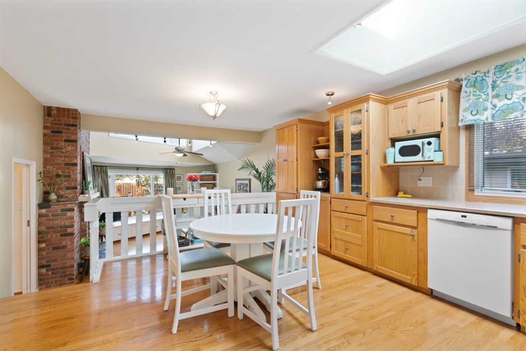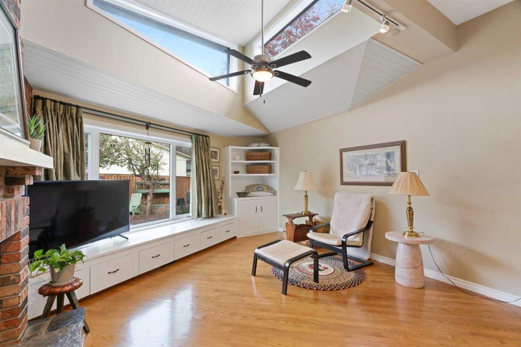 Step inside to discover a bright and inviting living space featuring a charming brick fireplace, soaring vaulted ceilings, and skylights that fill the home with natural light. Gleaming hardwood floors lead you through the main level, where a spacious kitchen offers plenty of room for cooking, dining, and gathering. Upstairs, you’ll find three comfortable bedrooms, perfect for family living.
